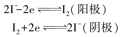 ①如溶液中含有I 2 /I - 电对时,在阳极发生氧化反应,在阴极发生还原反应: