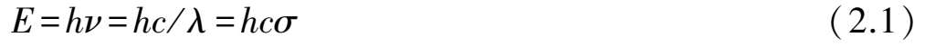 普朗克方程成功地将属于电磁辐射的波动性概念频率(波长、波数)与属于粒子性概念的光子能量联系在一起。从式(2.1)可知,电磁辐射的频率不同,其能量不同,频率越大,波长越短,能量越大;频率越小,波长越长,能量越小。