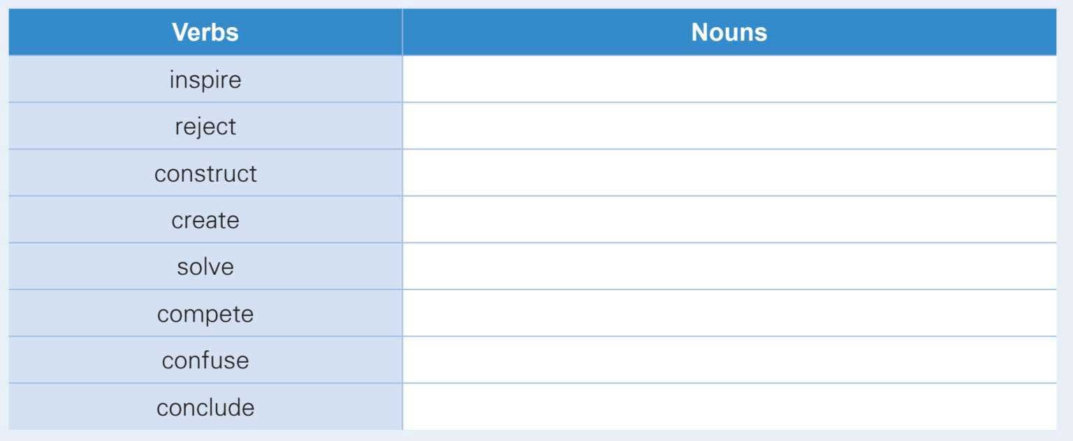 Write out the nouns derived from the following verbs and fill in the blanks in the sentences below with them. (写出由下列动词派生出的名词,并根据句意填写相关的词语。)