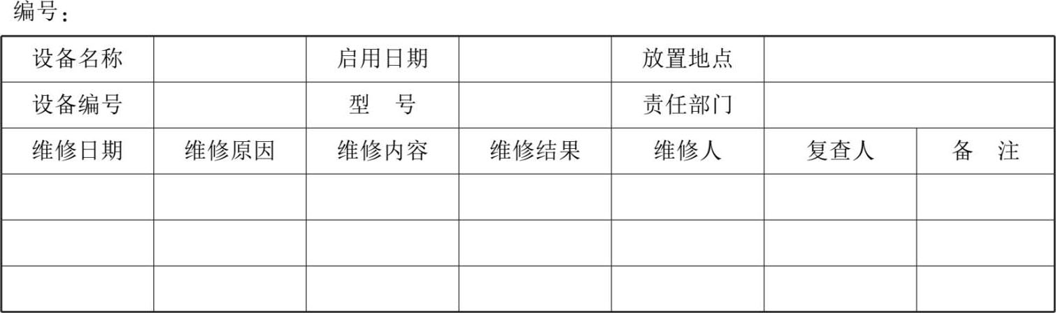 良好的设备维护,可以降低维修成本,降低设备损坏率和报废率,延长设备使用寿命。因此,维护工作在设备整个生命周期的管理中占有重要位置。药品经营企业应该建立设备维护制度和定期维护检修计划以及相应设备检修维护记录(见表 4.4),并严格执行。这些制度和记录要及时归档,纳入设备档案。