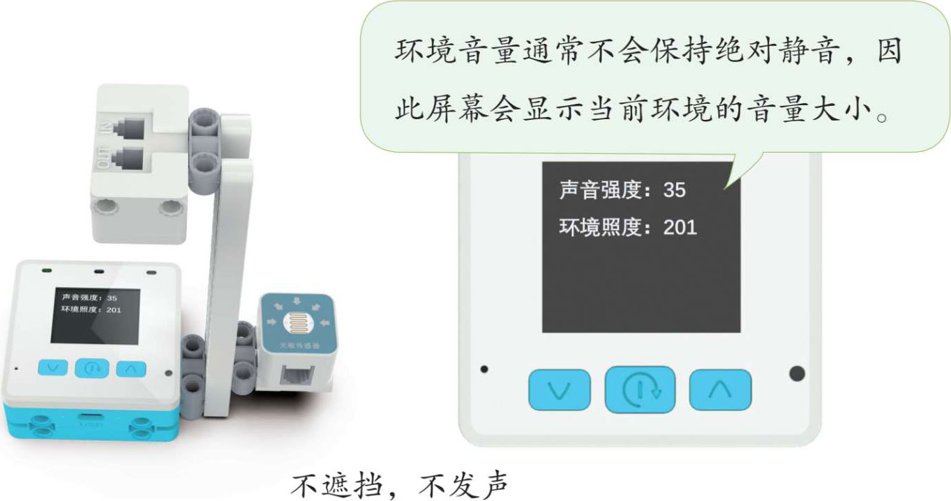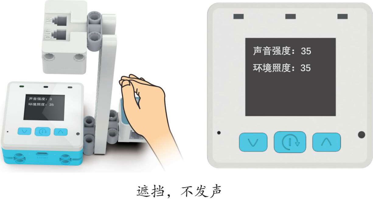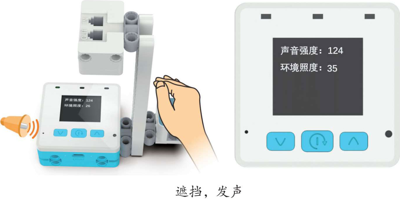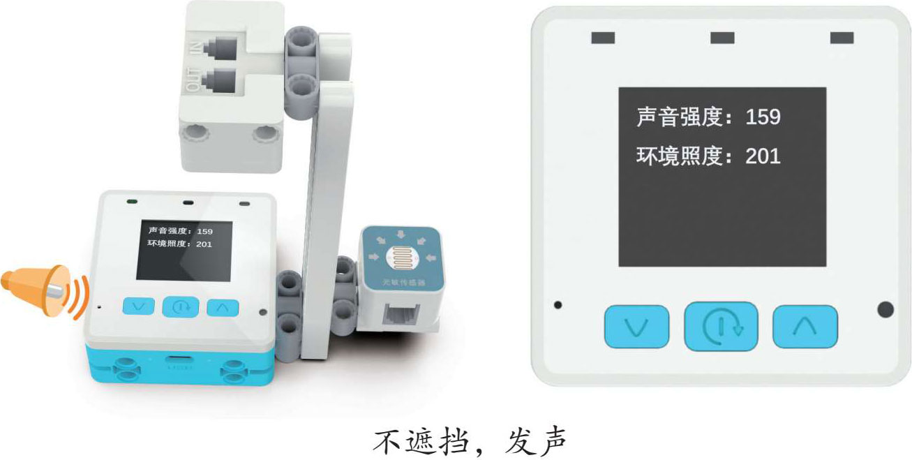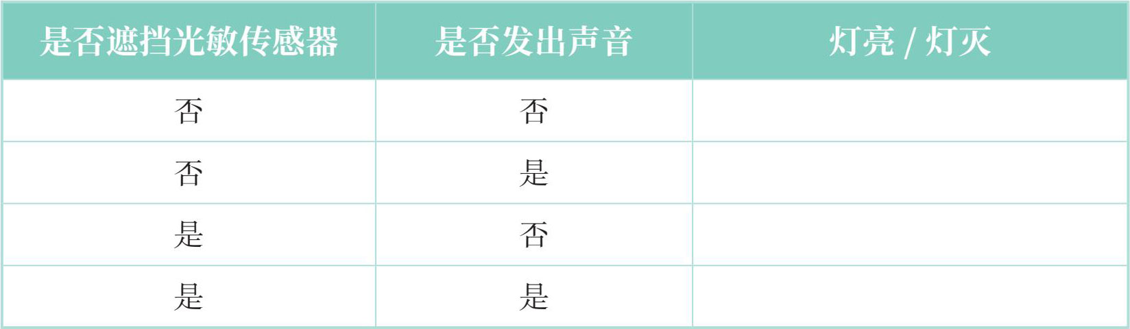 ④用手遮挡光敏传感器,发出适量的声音,观察并记录灯的状态。