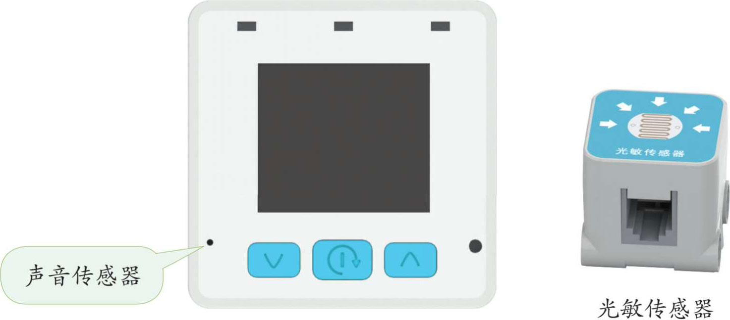 楼道灯是一种声光双控灯,它通过光敏传感器和声音传感器分别感知环境光照强度和音量大小来控制灯的亮灭。声音传感器是一种将声音信号转换为电信号的电子元器件,它通过麦克风采集声音的强度信息。主控器上也有声音传感器,它的侦测范围是0~255。