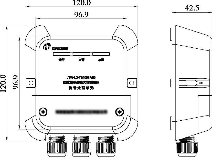 图2.25 JTY-HS-TS1006线型光束感烟火灾探测器结构示意图(单位:mm)