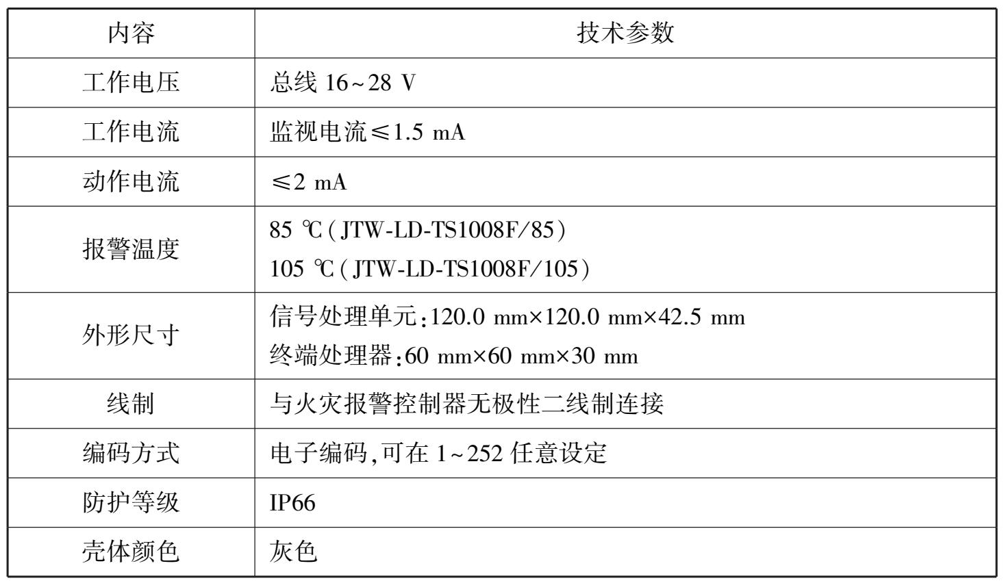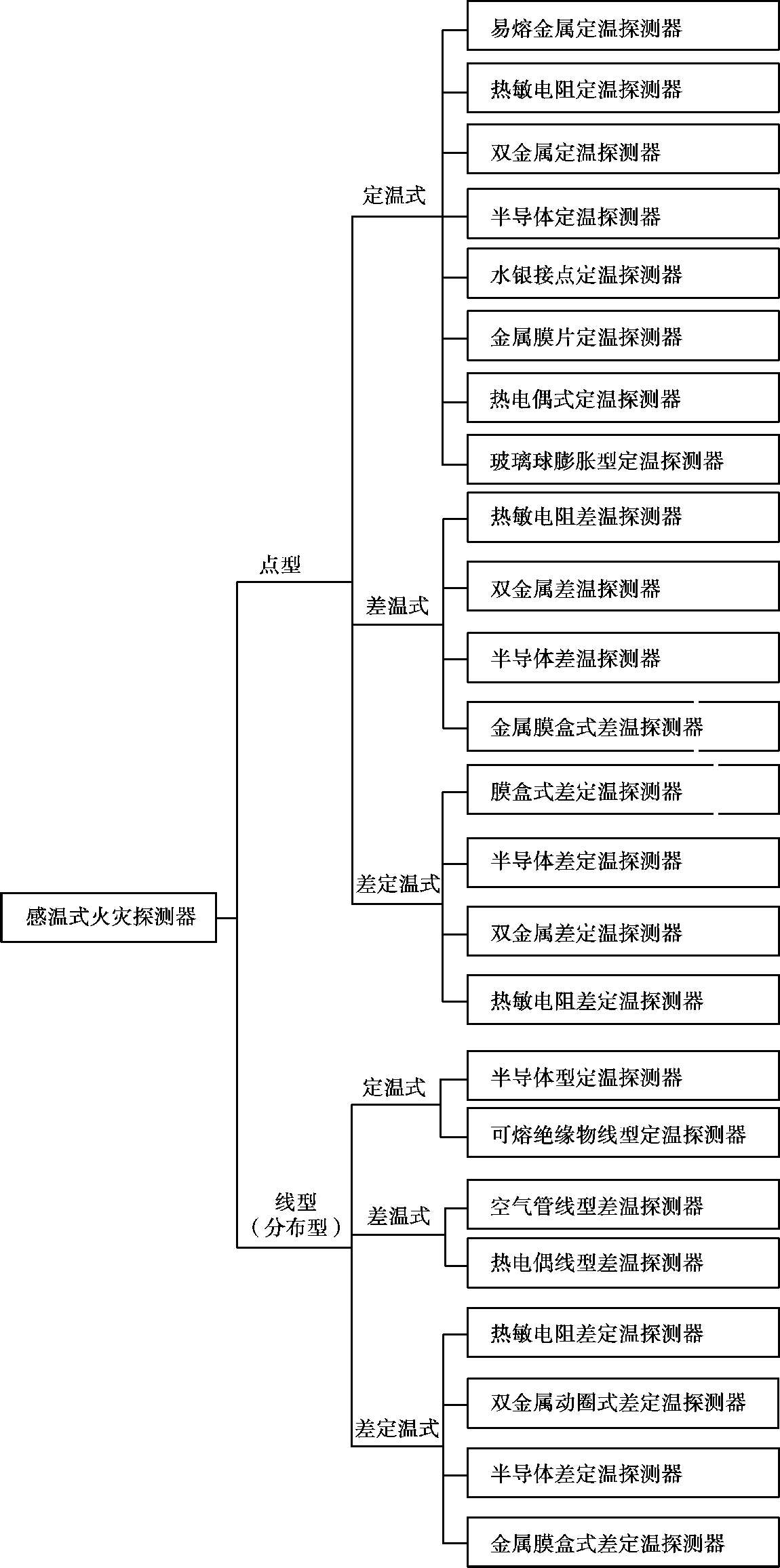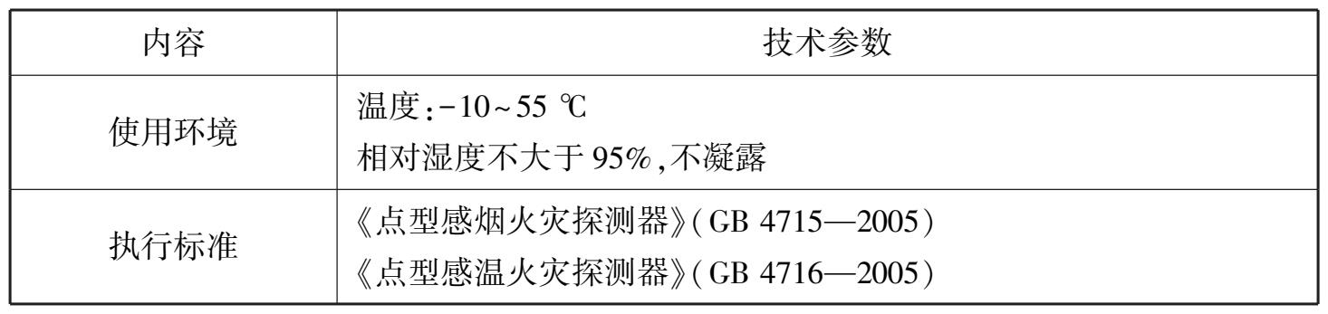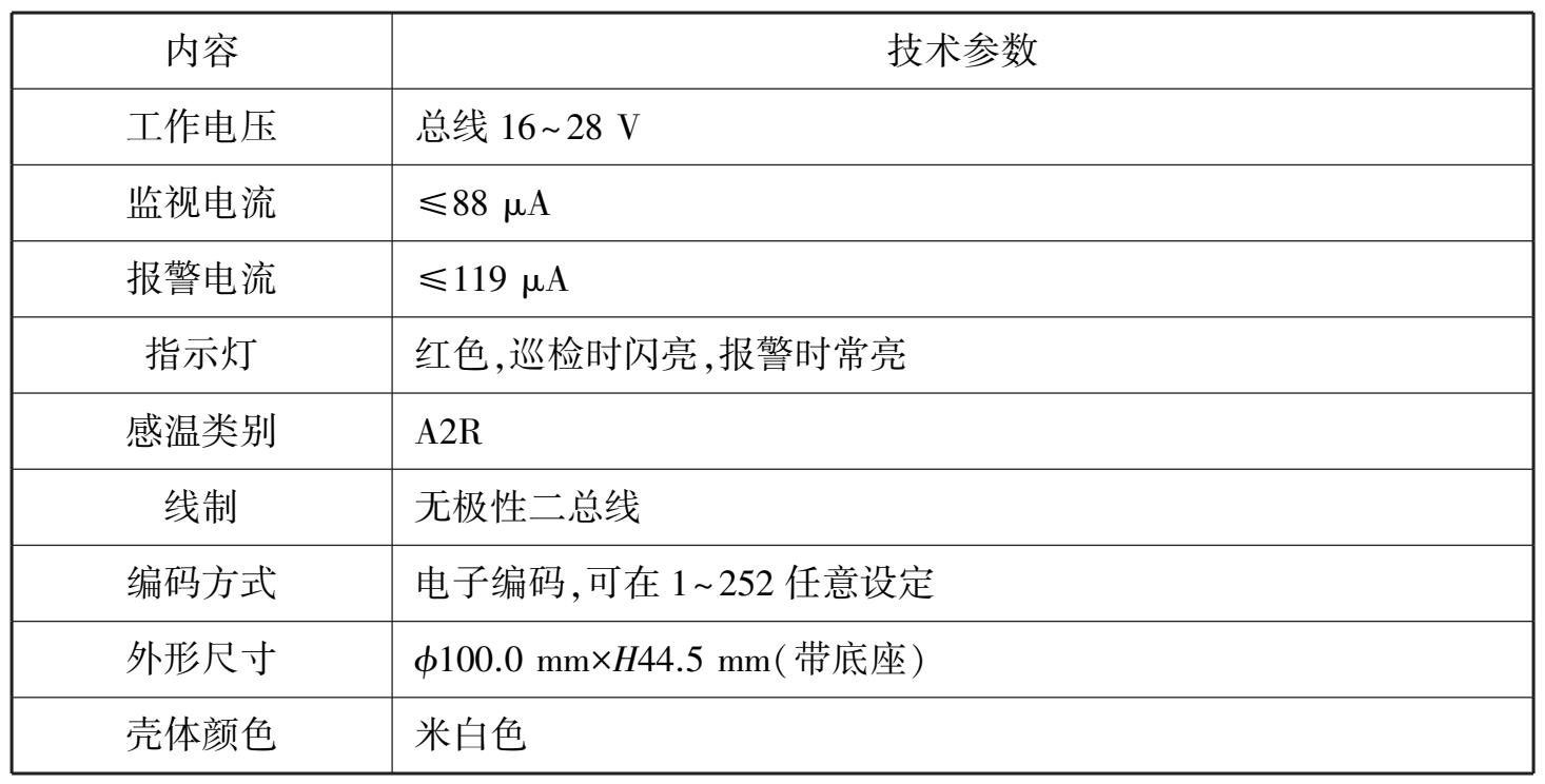 注:表中A1、A2、B、C、D、E、F、G为点型感温探测器的不同类别,其具体参数应符合《火灾自动报警系统设计规范》(GB 50116—2013)中的相关规定,见表2.8的规定。