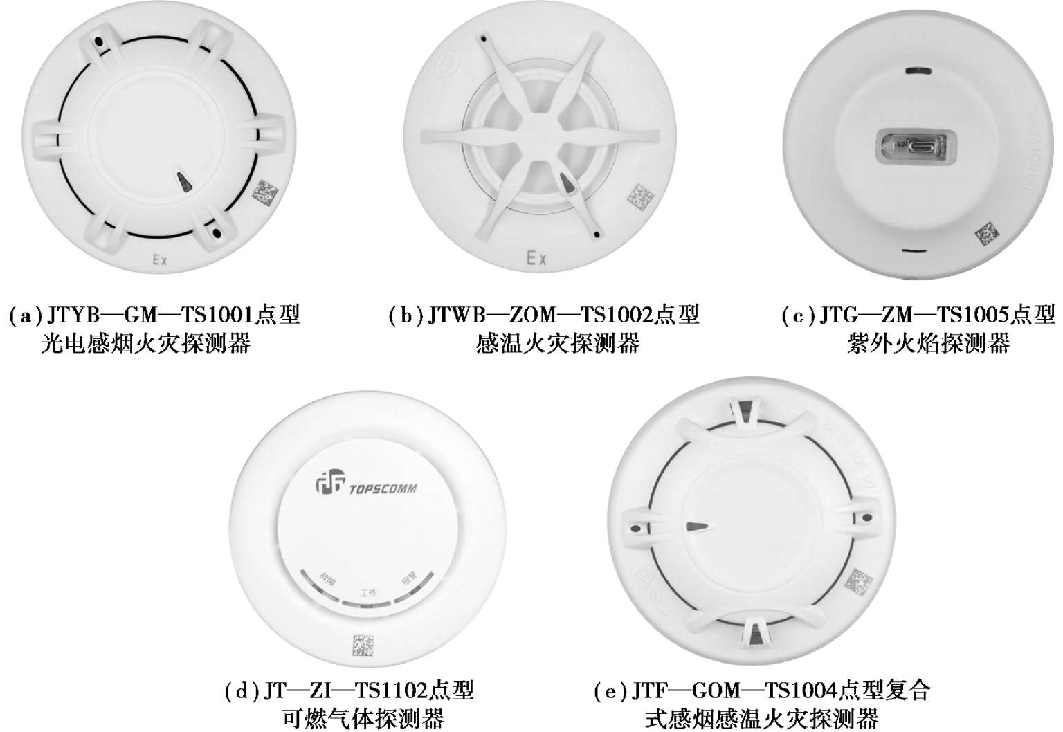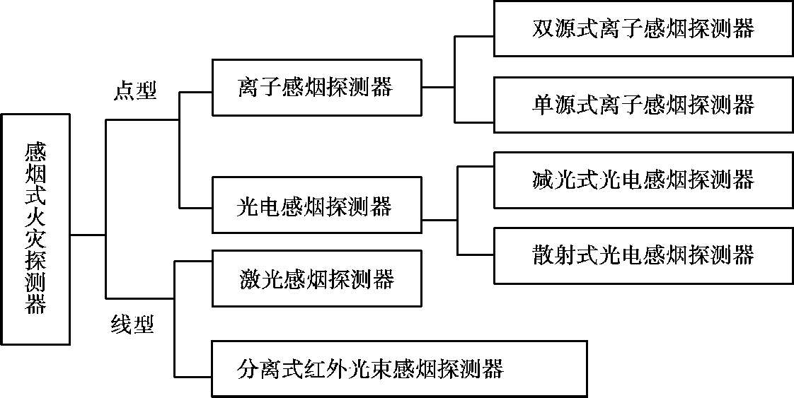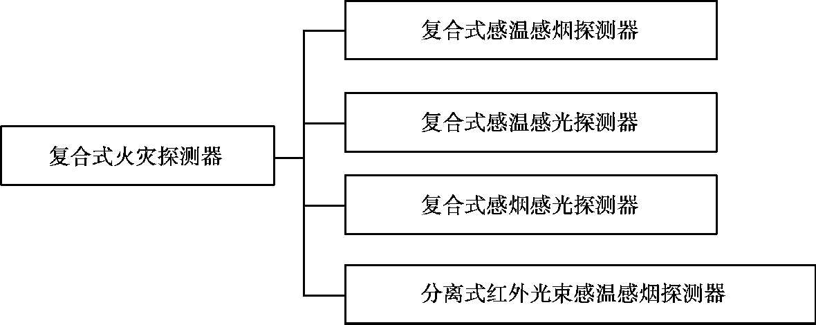 根据探测器所响应火灾的物理特性,探测器可分为感烟探测器、感温探测器、感光探测器(火焰探测器)、可燃气体探测器、复合探测器,如图2.7所示。