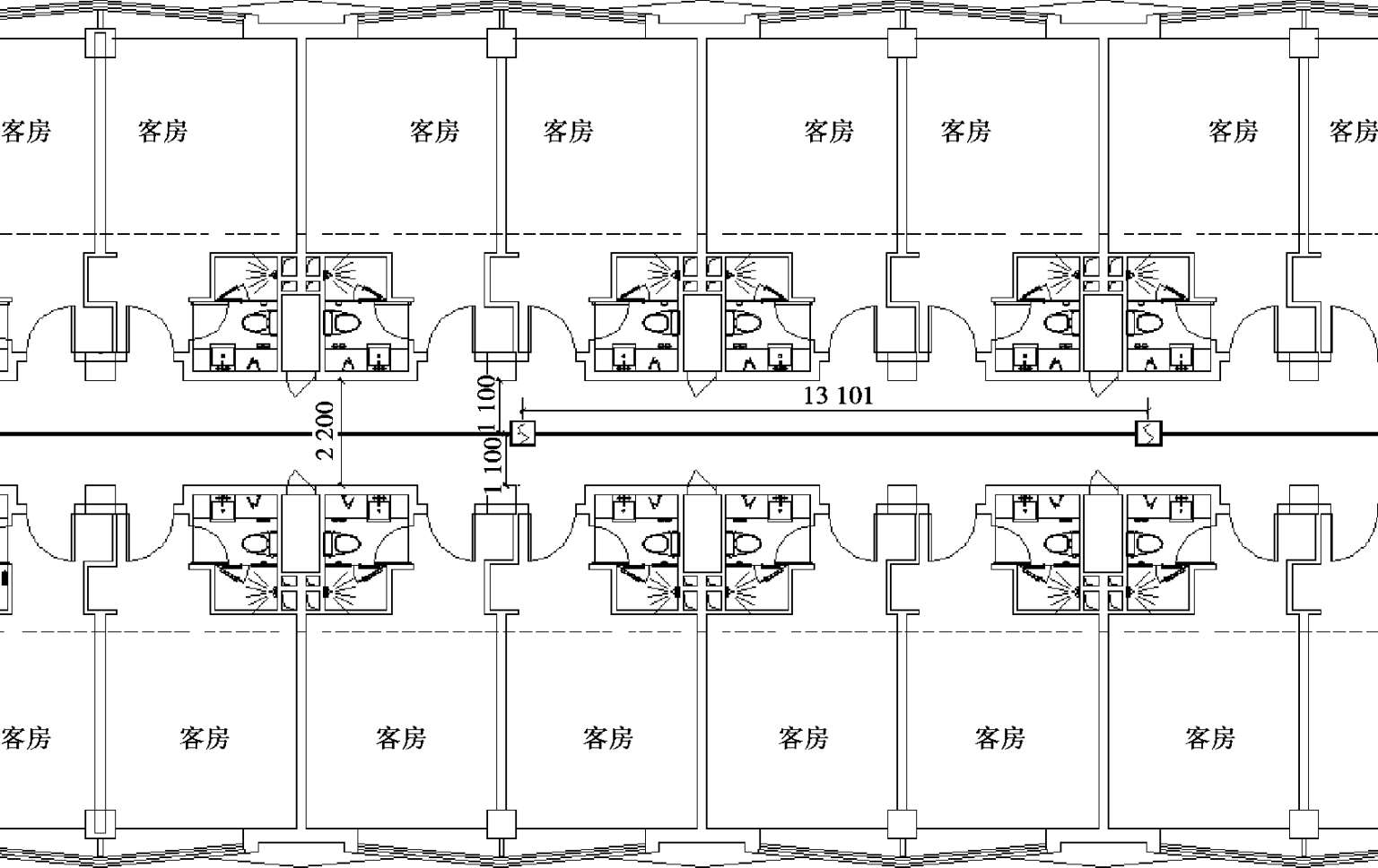 在实际工程中房间功能及探测区域大小不一,房间高度和棚顶坡度也测器的布置设计各异,应按规范确定探测器的数量。规范规定每个探测区域内至少设置一个火灾探测器。一个探测区域内所设置探测器的数量应按下式计算