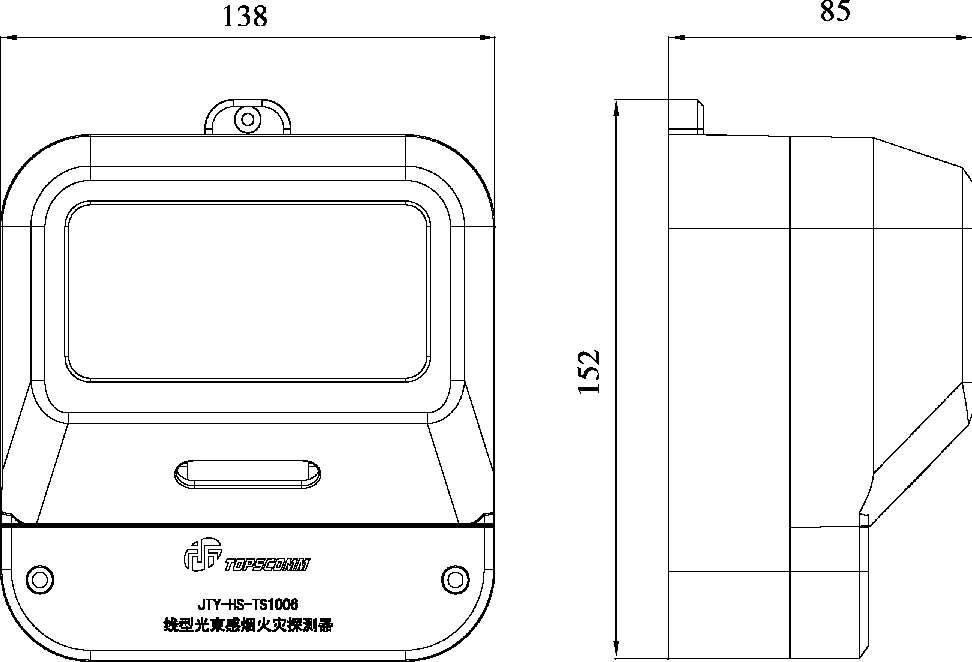 ③结构特征。JTY-HS-TS1006线型光束感烟火灾探测器外形结构示意图,如图2.25所示。