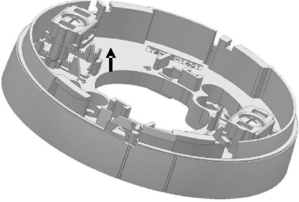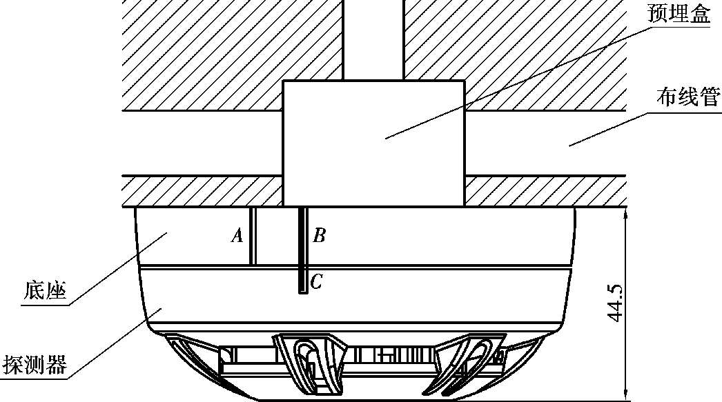 探测器与底座上均有定位凹槽,使探测器具有唯一的安装位置。待底座安装牢固后,将探测器底部的凹槽 C 对准底座凹槽 A 处,顺时针旋转至凹槽 B 处,即可将探测器安装在底座上,如图2.18所示。