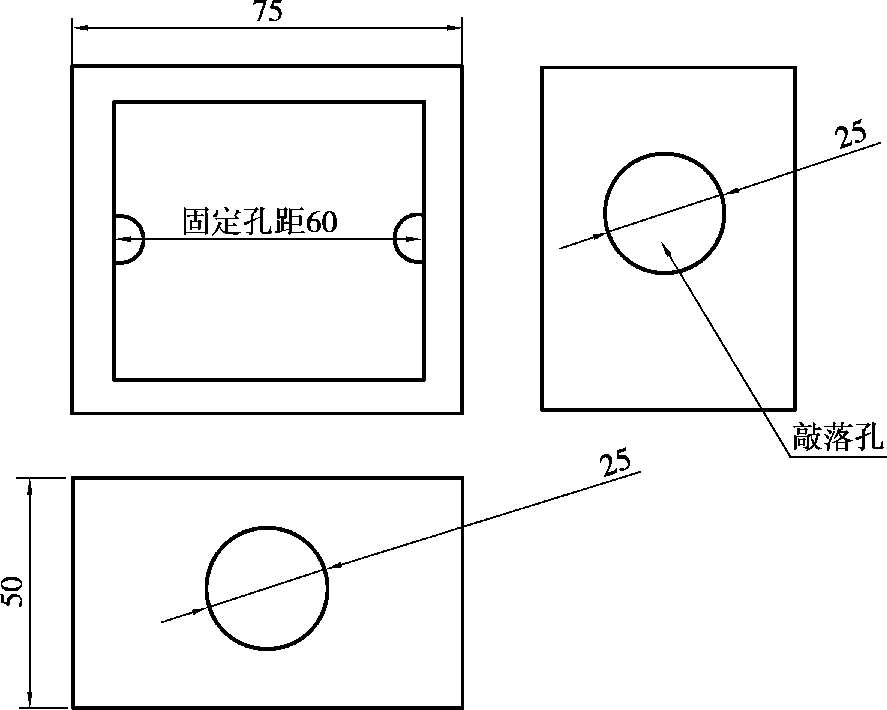 预埋盒可采用86H50标准预埋盒,其外形结构示意图,如图2.19所示。