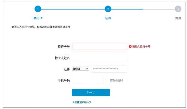 ④设置支付方式。按照网页提示绑定相关的银行卡即可。