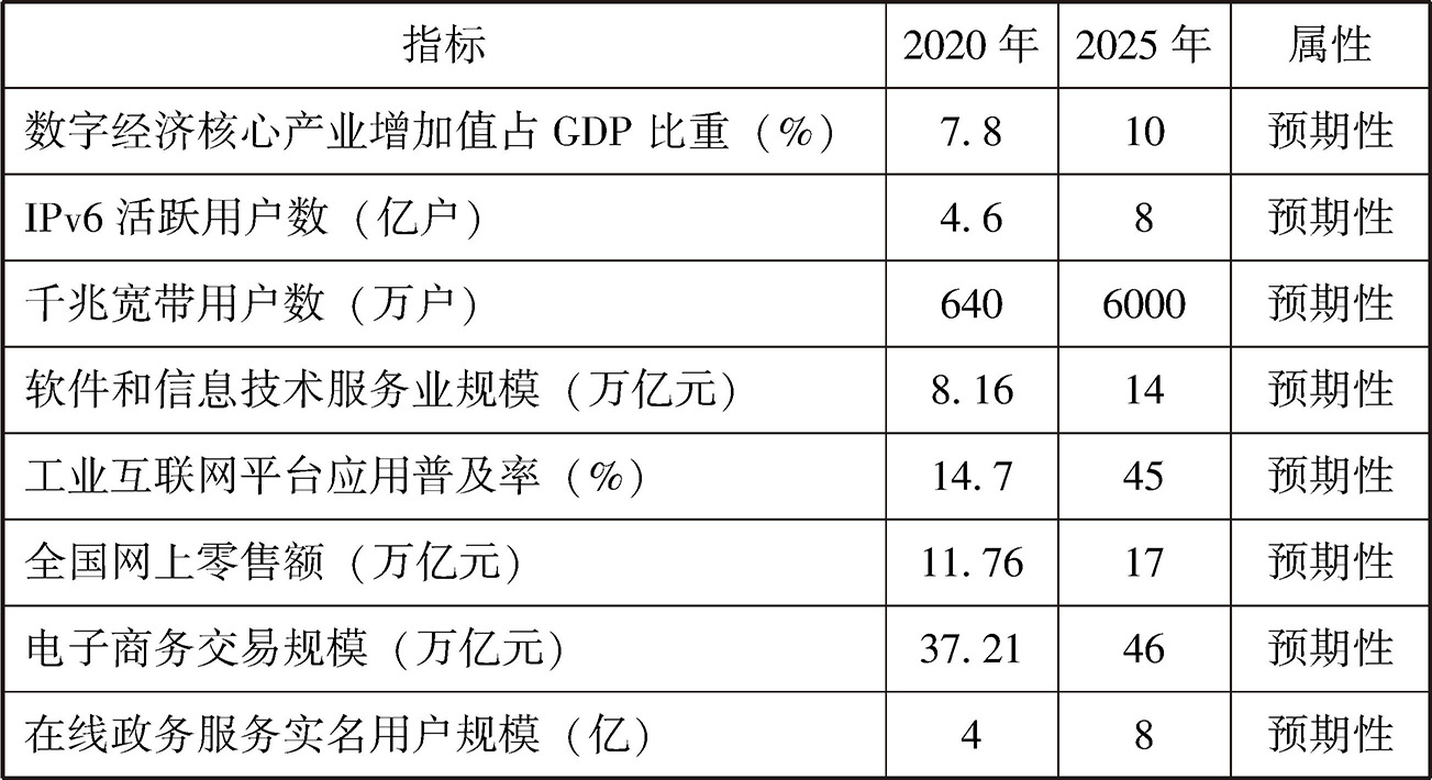 “十四五”数字经济发展主要指标