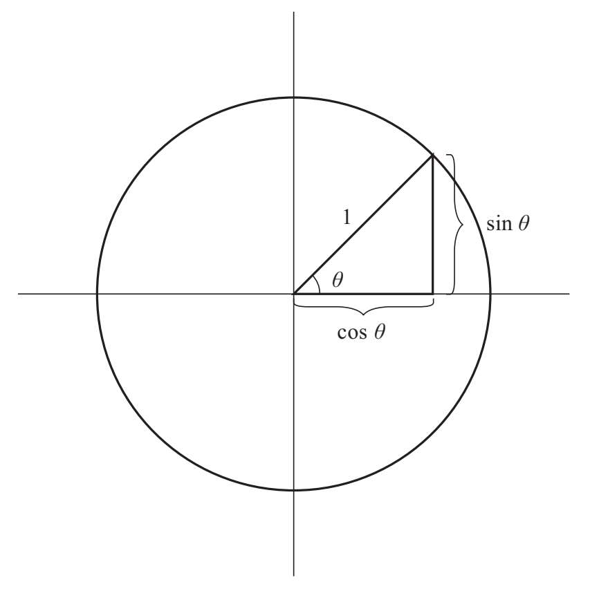 如图3–4所示,在半径为1的圆上表示出sin θ 和cos θ ,根据毕达哥拉斯定理将得到以下等式: