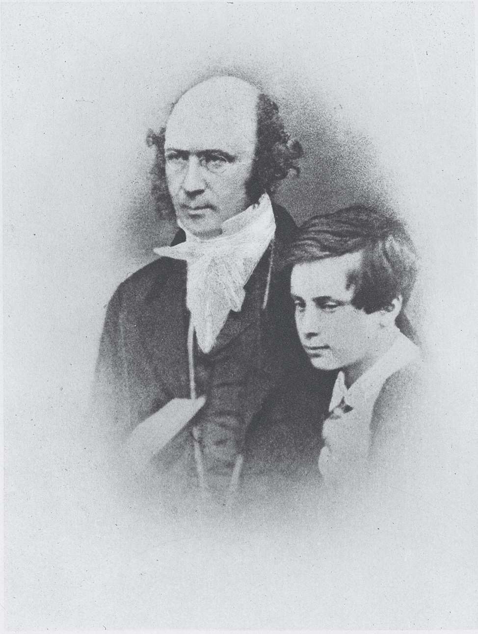 图4–1威廉·罗文·汉密尔顿爵士和他的儿子(大约1845年,图片经爱尔兰皇家科学院© RIA许可)。在那时,照相需要长时间的曝光,这可能解释了为什么照片上的汉密尔顿从来不笑。但据记载,他为人十分幽默