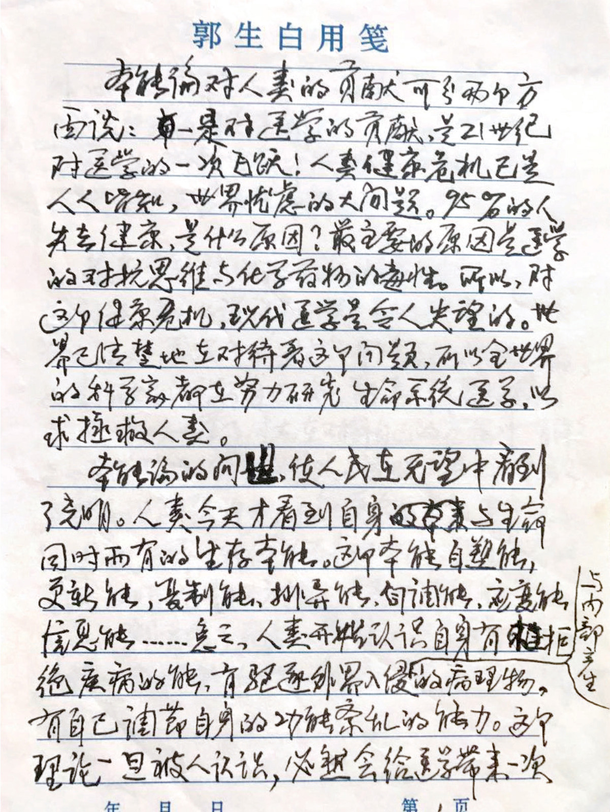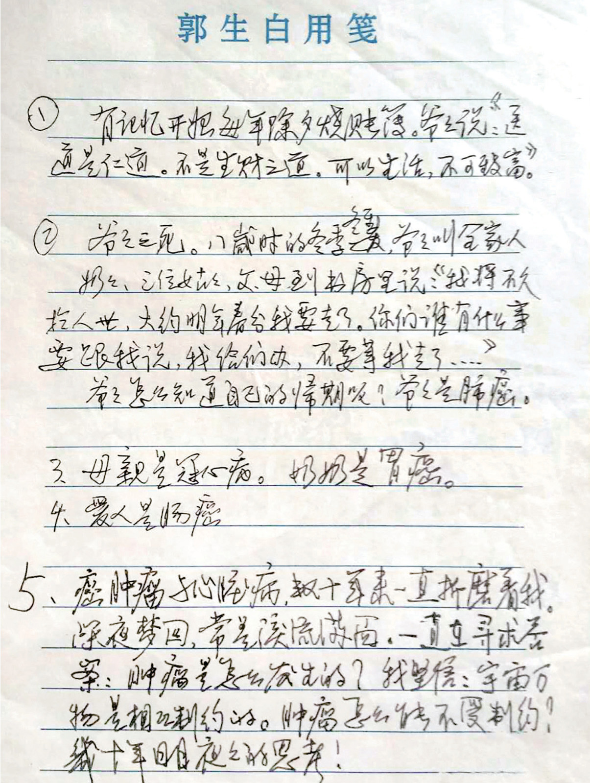 ◎郭生白先生手稿(爷爷的训诫与家人病苦所带来的伤痛、思考)