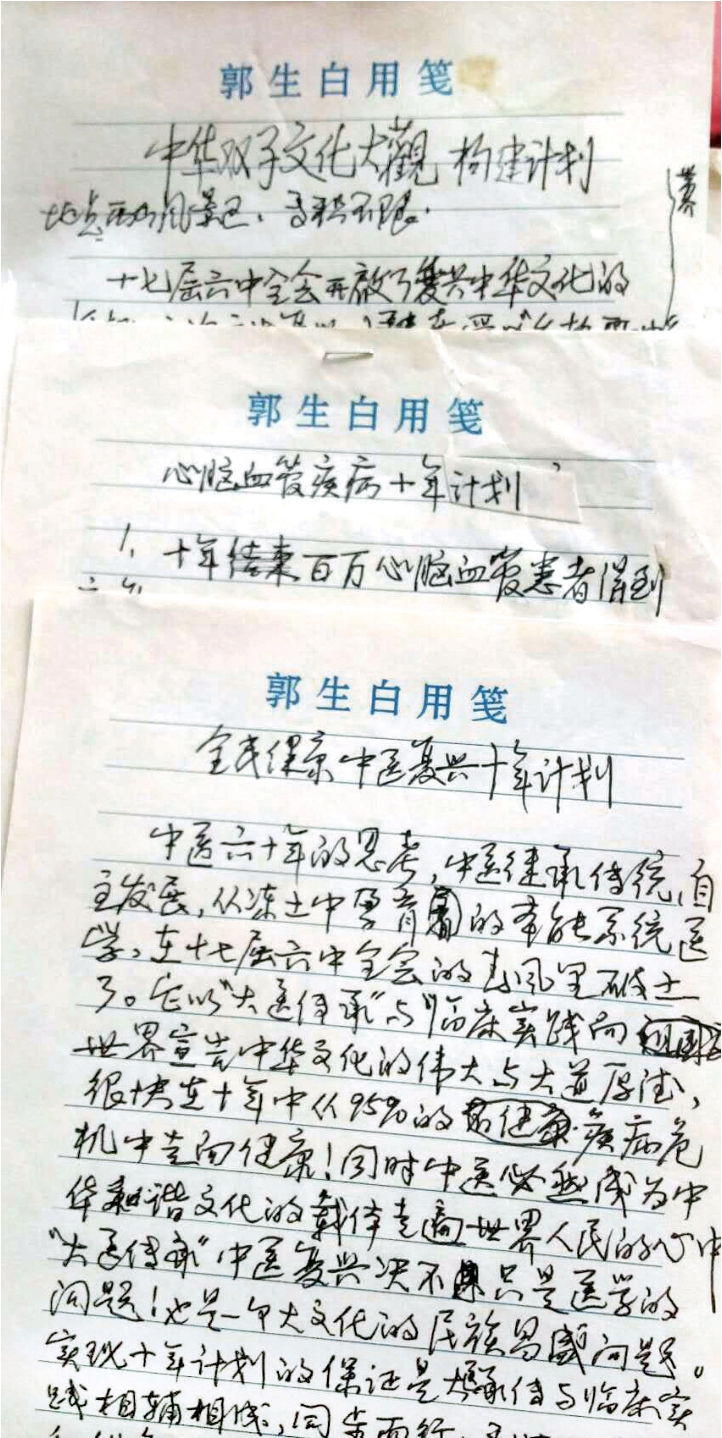 ◎部分文章手稿:《全民健康中医复兴十年计划》《心脑血管疾病十年计划》等