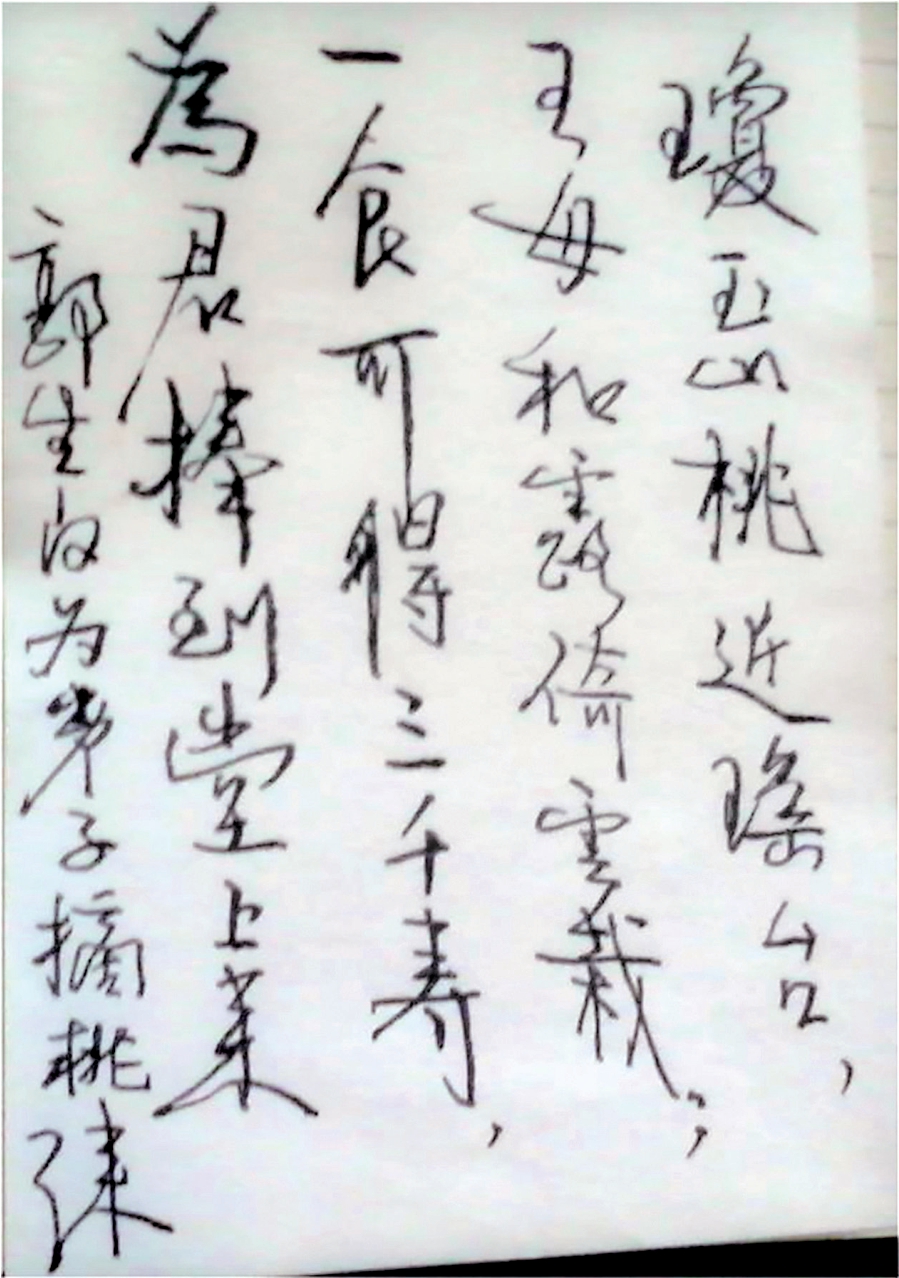 注:2011年6月15日“大医传承”课堂正式开始,上课期间恰逢郭生白多次提过的深县蜜桃成熟,他托人摘来桃子给弟子们品尝。“大医传承”历经艰难得以举办,郭老心中愉悦,随手而作此诗。