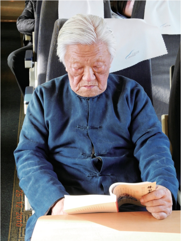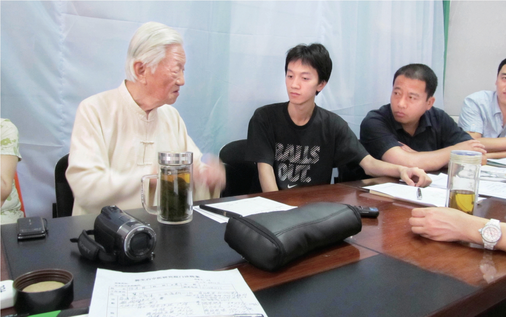 ◎为了“全民健康、中医复兴”,壮心不已,念念在兹!——郭生白(左一)与贾谦(中)、陆广莘(右一)在京商讨“大医传承”事宜