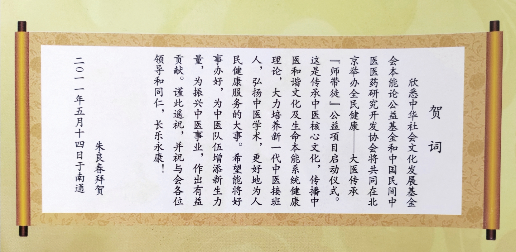 ◎国医大师朱良春在江苏南通为启动仪式发来贺词