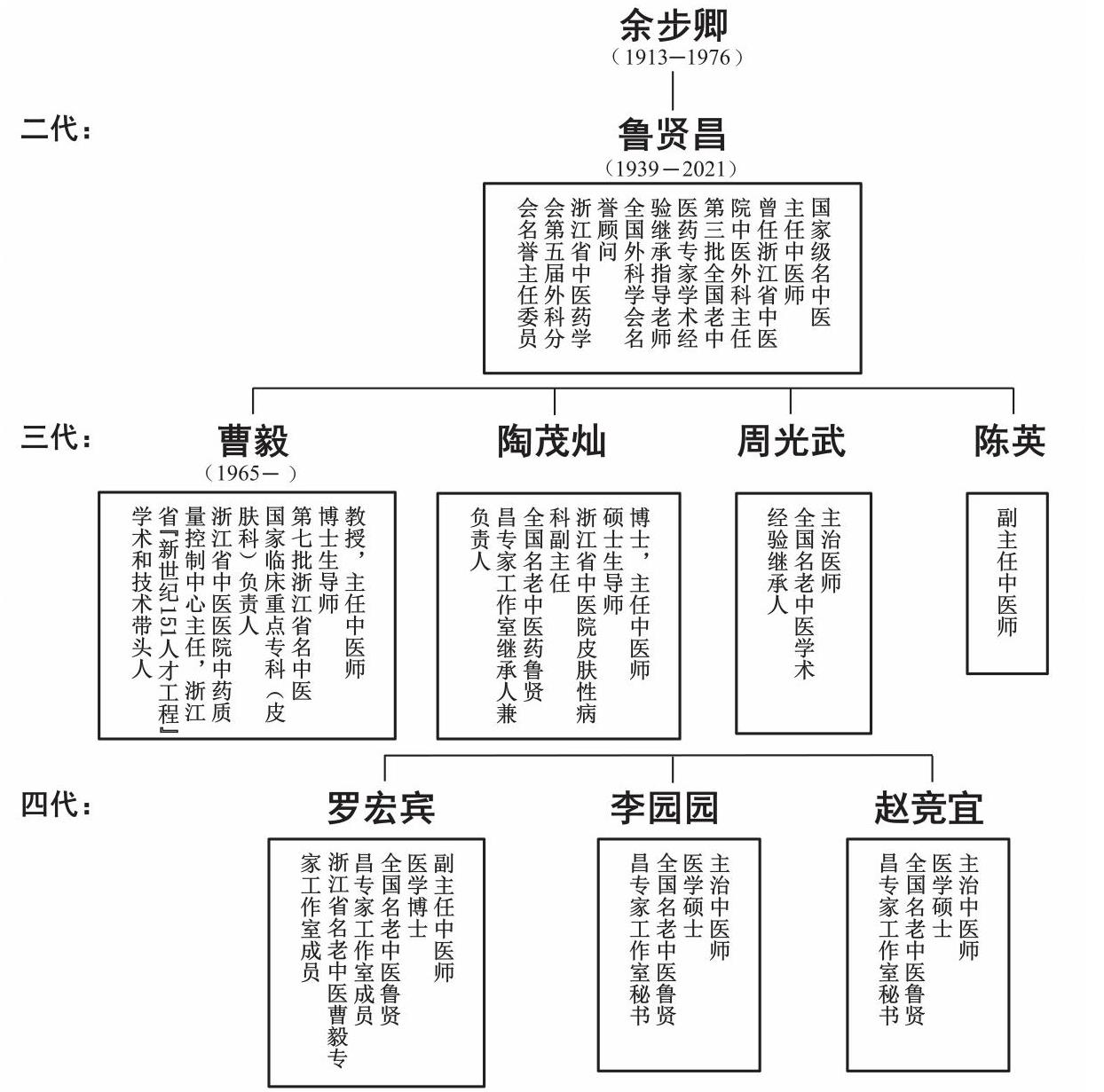 鲁贤昌,国家级名中医,主任医师,曾任浙江省中医院中医外科主任,第三批全国老中医药专家学术经验继承指导老师,全国外科学会名誉顾问和浙江省中医药学会第五届外科分会名誉主任委员。鲁老长期从事医疗、教学、科研工作,主持多项研究课题,获国家中医药管理局优秀科技成果三等奖,省优秀科技成果二等奖。发表论文40余篇,参与编写多部论著。