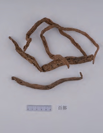 百部基原植物为百部科Stemonaceae百部属 Stemona 多年生攀援性草本植物直立百部 Stemona sessilifolia (Miq.)Miq.、蔓生百部 S . japonica (Blume)Miq.或对叶百部 S . tuberosa Lour.。对叶百部又名大百部、大春根药、山百部根、九重根。块根常纺锤形,长达30 cm;茎少分枝,攀援状;叶对生或轮生,稀兼有互生,卵状披针形或卵形,长6~24 cm;花单生或2或3朵组成总状花序。花期3~7月。生于海拔370~2 240 m的山坡丛林下、溪边、路旁以及山谷和阴湿岩石中,分布于我国长江流域以南各地,以及中南半岛、菲律宾和印度北部,日本有引种栽培。