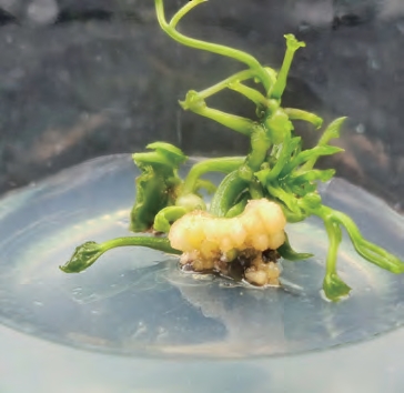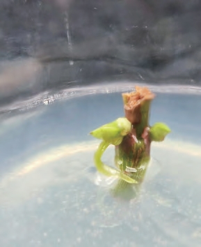 百部组织培养常以带芽的嫩茎段为外植体。将带芽的2~3 cm长的百部嫩茎段洗净去污后晾干,置于超净工作台中。用75%酒精浸泡30 s,无菌水冲洗一遍,再用0.1%的HgCl 2 消毒10 min,无菌水冲洗3~5次。用无菌滤纸将带芽茎段表层的水分吸干后,将其置于初代诱导培养基上进行诱导培养。