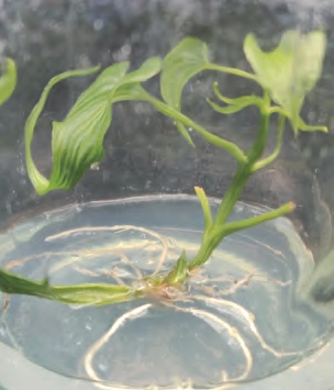 选择健壮的百部完整组培苗,打开组培瓶盖,向培养基表面加入少量自来水,置室温下炼苗3 d,然后洗净根部培养基,再移栽到由泥炭土:蛭石=1:1(体积比)组成的基质中,遮阴保湿,移栽21 d后,组培苗成活率达100%。