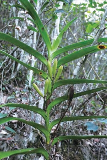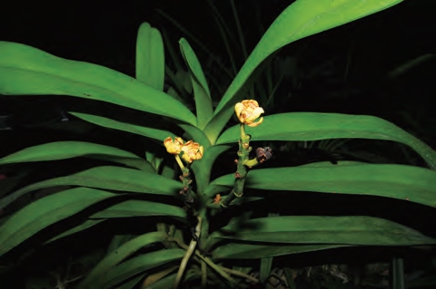多花脆兰基原植物为兰科Orchidaceae脆兰属 Acampe 植物多花脆兰 Acampe rigida (Buch.-Ham.ex Sm.)P.F.Hunt。别名香蕉兰、芭蕉兰、焦兰,是一种观赏价值较高的大型附生野生兰,国家二级重点保护植物。茎粗壮,长可达1 m;叶近肉质;花苞片肉质,花黄色带紫褐色横纹并具香气。生于海拔560~1 600 m的林中树干上或林下岩石上,分布于广东南部、香港、海南、广西西南部、贵州南部、云南南部等地。