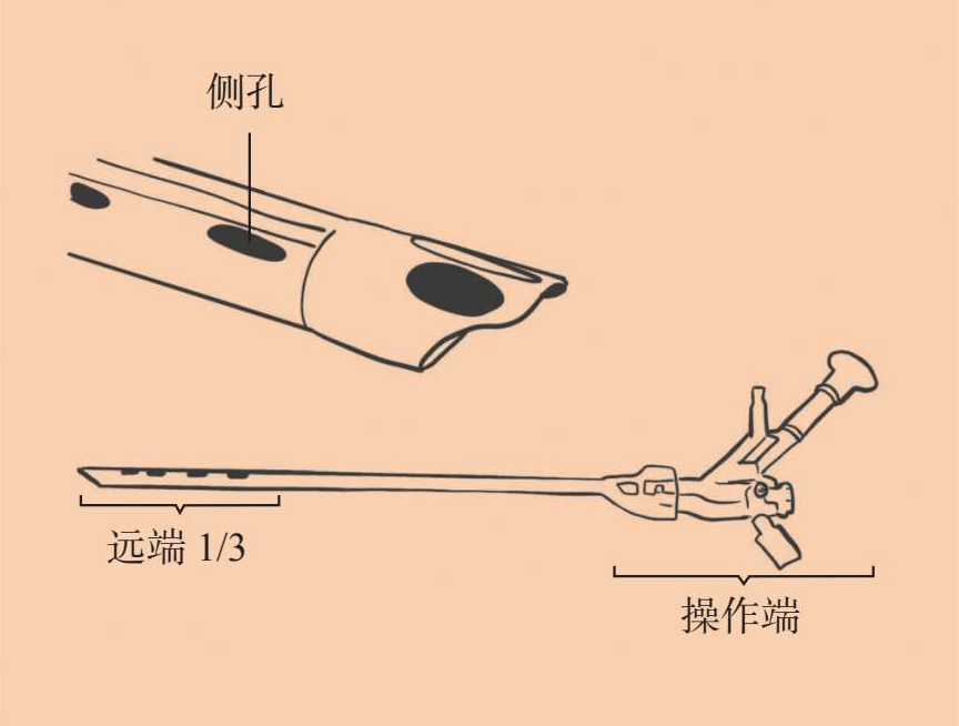 现代硬质支气管镜外观就像一根空心的不锈钢钢管,根据不同的功能,分为管径、长度、有无侧孔等各不相同的不同型号,在治疗过程中综合患者的性别、年龄、病情等各种因素进行选择。硬质支气管镜的管壁厚 2~3 毫米,远端是斜面,以便通过声门和气道内病变的狭窄区域,同时也有利于铲切、除去气道壁上的肿瘤。有些硬镜的远端 1/3 镜体的管壁上带有侧孔,这是镜体进入一侧主支气管时对侧气道保持通气用的。硬质支气管镜的操作端会有很多个接口,可以用来连接呼吸机、光源、吸引管和操作钳道等。