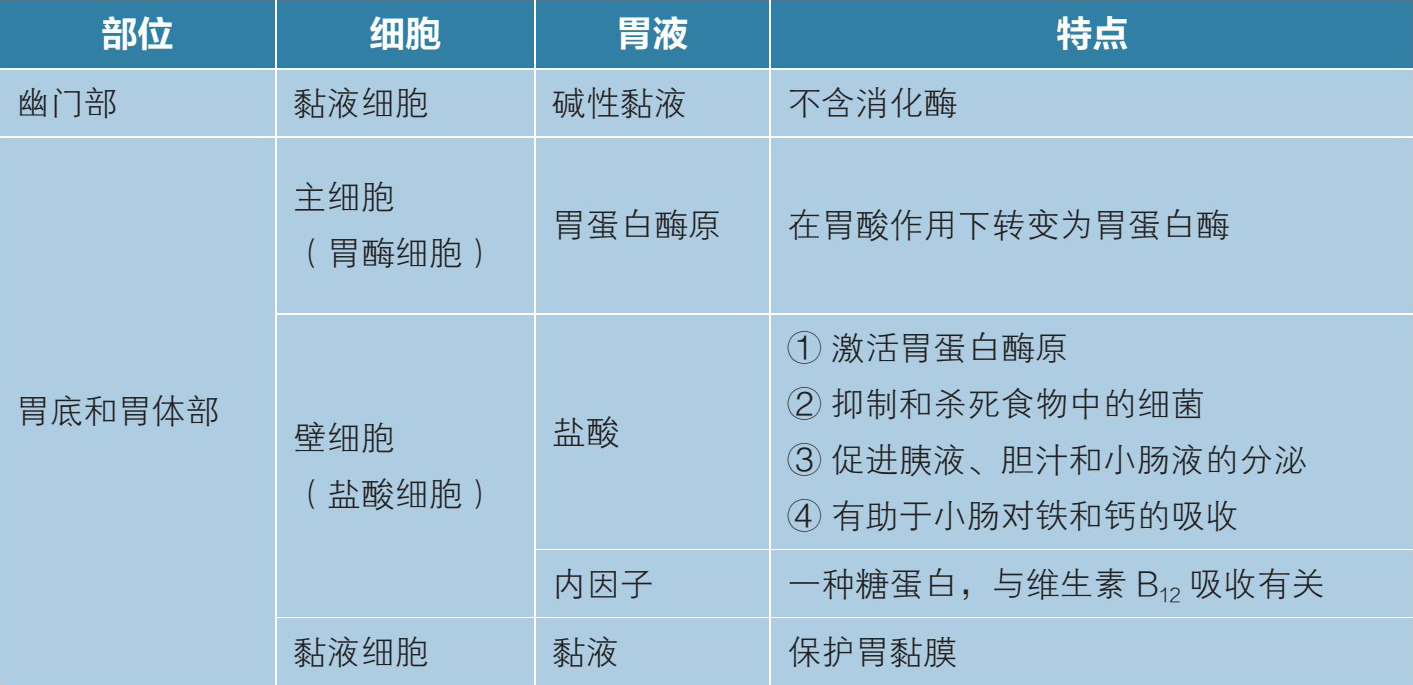 表1-6 胃液的组成、分泌部位及特点