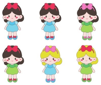 (4)图中有几个洋娃娃的头发是黄色、头上有红色的蝴蝶结并且穿着绿色衣服?