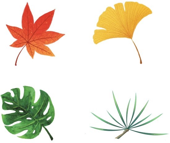 大自然中的植物种类可多啦!请根据下面树叶的形状说出植物的名称,看看你认识多少种植物。