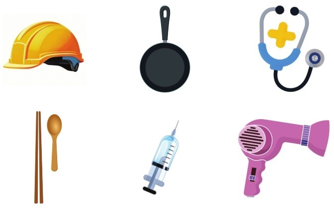 在各行各业中,从事不同职业的人在工作时所需的工具不同。例如,消防员在工作时要戴头盔,厨师在工作时离不开锅铲。医生在工作时会用到听诊器、针筒、压舌板、血压计等物品。 yhd3+okQn2a/8vuYAaD/RABv4BKiqmfTHSfoD3f9xQRFYVrqOh0WJwfHaLJK1f8X