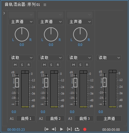 “音轨混合器”面板可以有效地调节素材的音频,实时混合各轨道的音频对象,如图1-14所示。