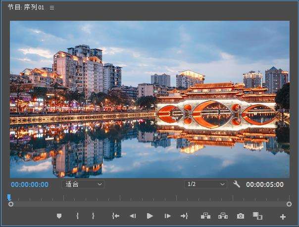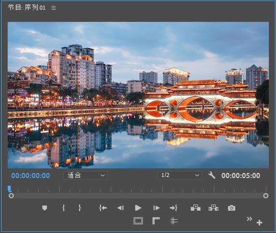 “播放-停止切换”按钮 / :单击此按钮,素材会从监视器窗口中时间标签 的当前位置开始播放,再单击一次,停止播放;在“节目监视器”窗口中,按J键可以进行倒播。
