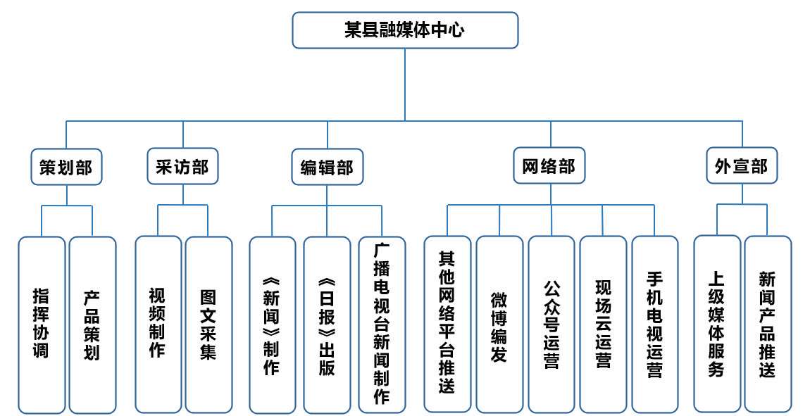▲ 图1-2 某县融媒体中心的组织构架及职能分工