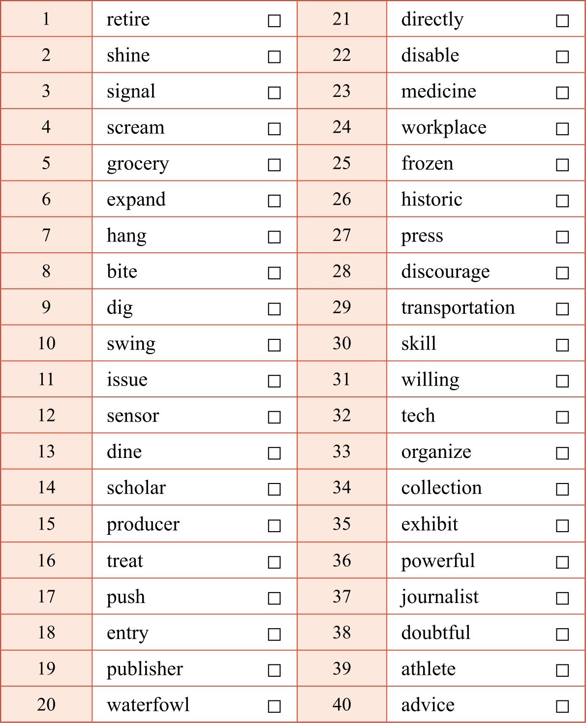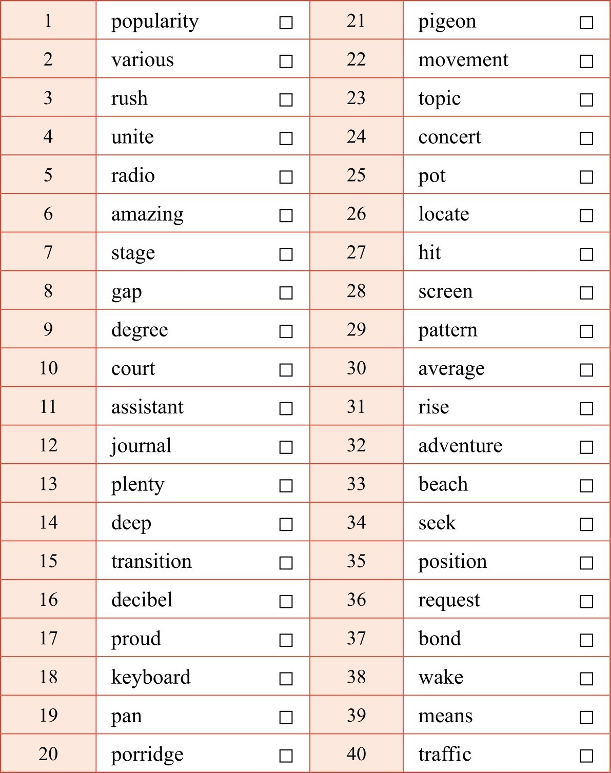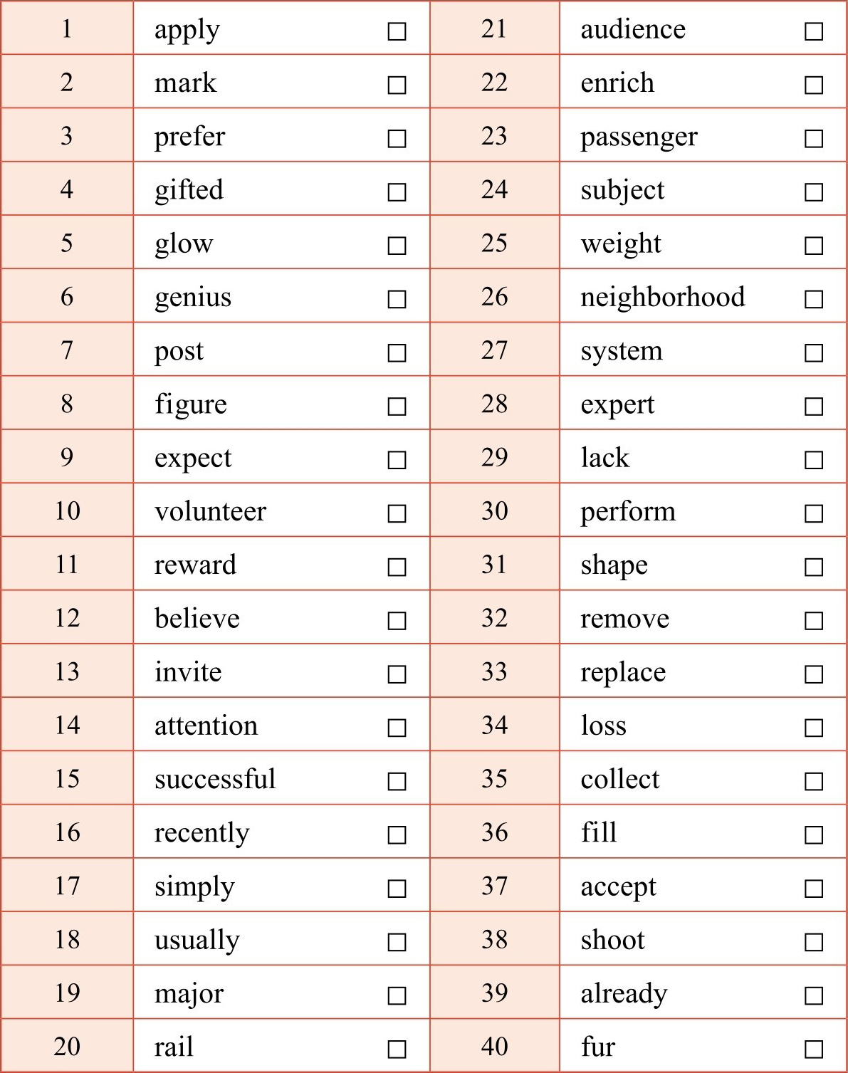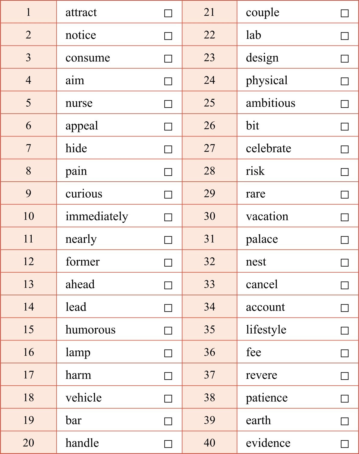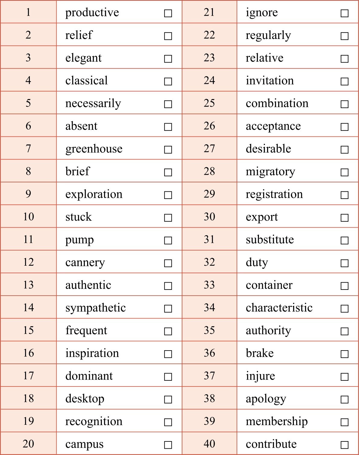 陌生词转化为短时记忆词。 那些不认识的词汇可以在词汇后打勾标注。晚上睡觉前快速将用对勾标注出来的词汇重新读熟。第二天读新单词前把前一天用对勾标注的单词再读一次,这次能读出的词汇则属于短时记忆词,在语篇中出现后就可以想起,可以不再背诵。仍不认识的词则需要用荧光笔标注,做强提醒,如此往复。