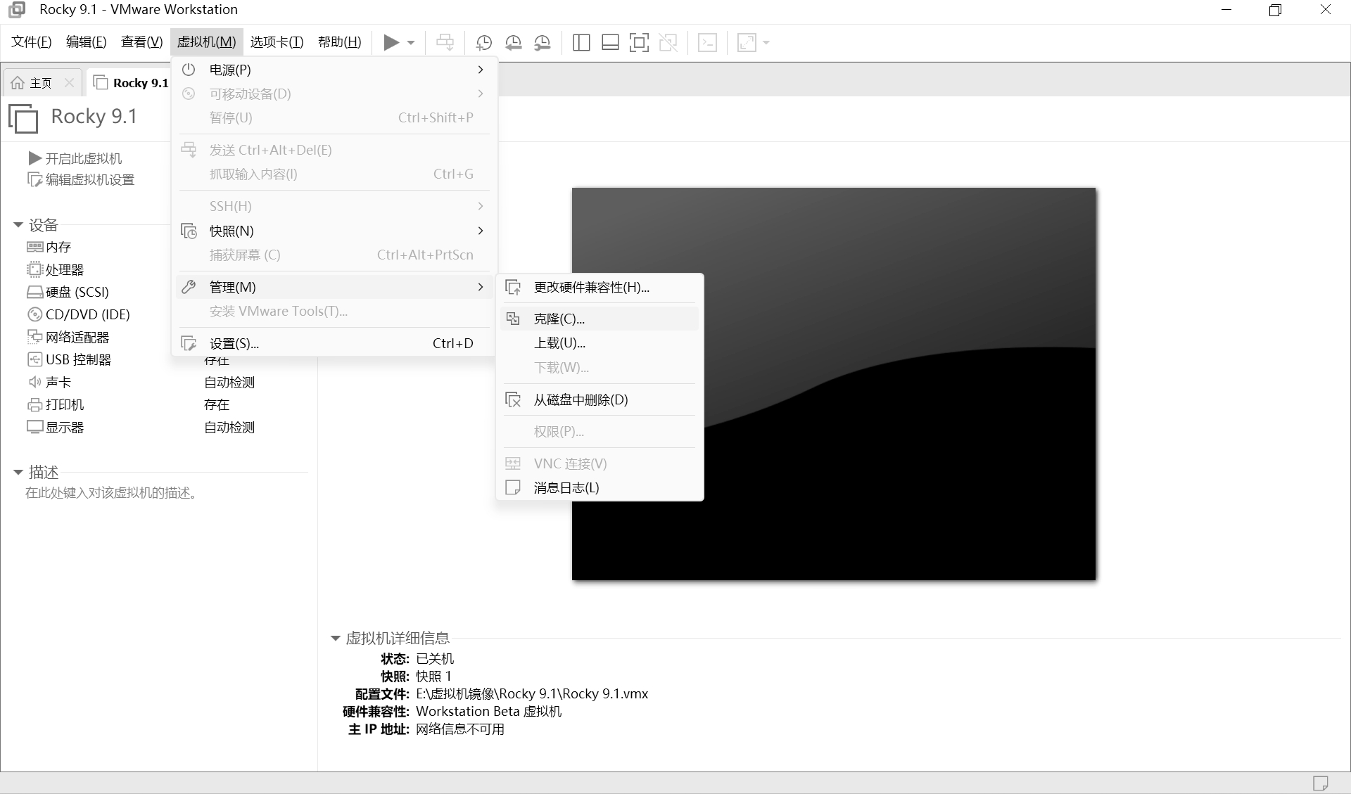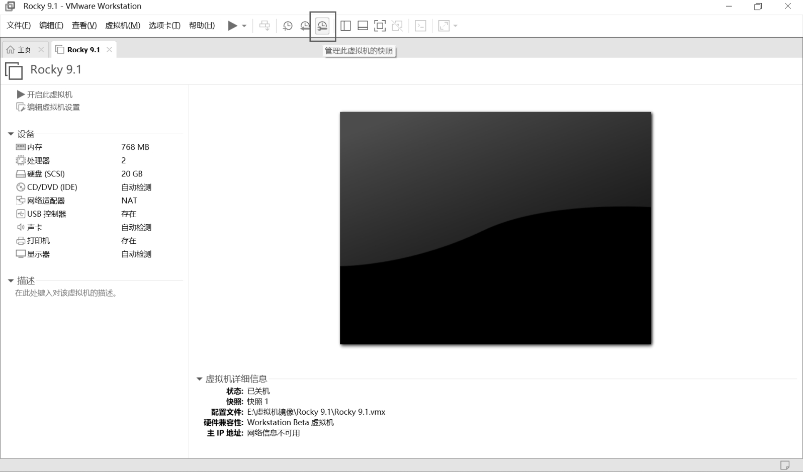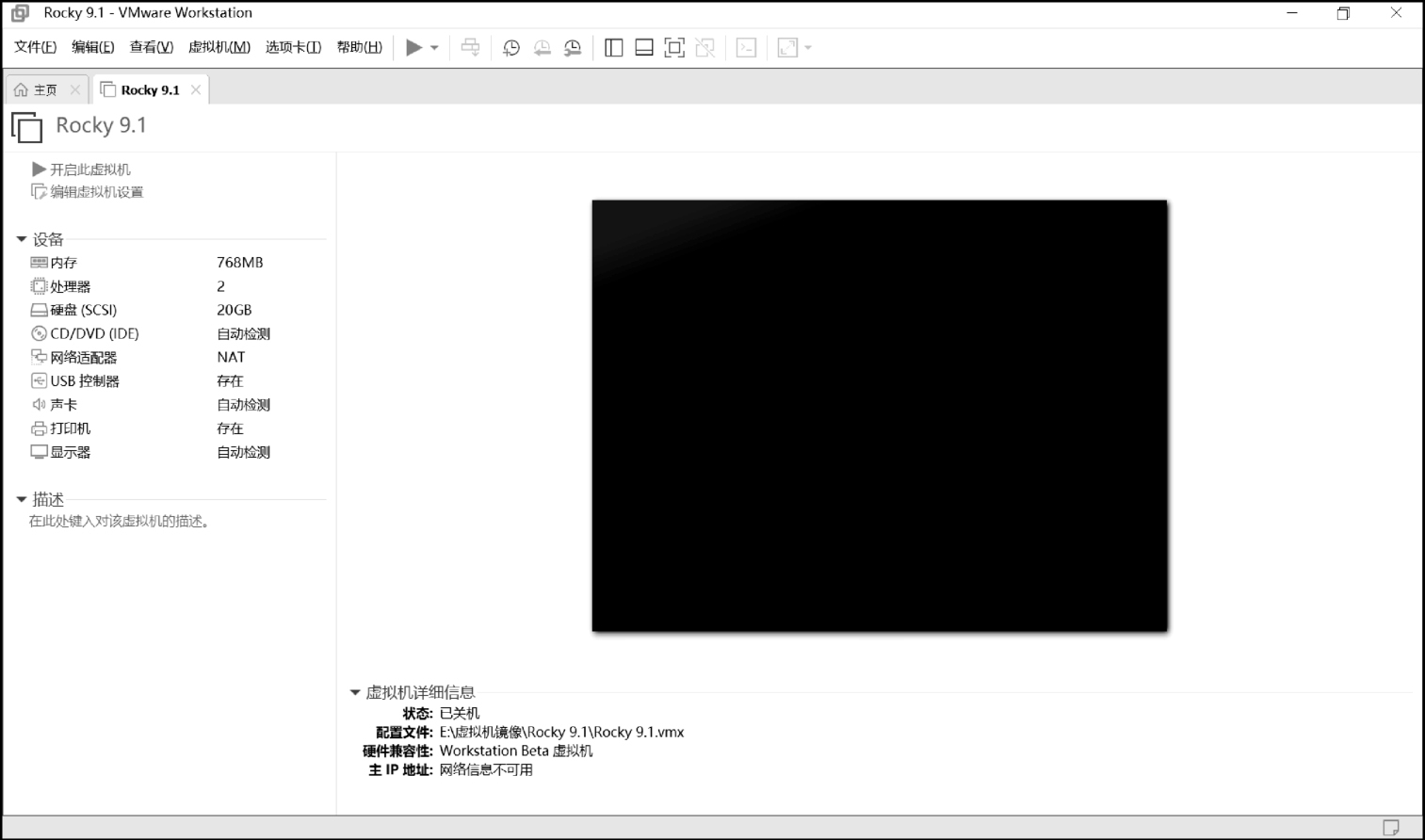 注意: 此时的Rocky 9.1镜像只是一个空白镜像,还没有安装好系统,就像你刚买好了计算机,但是没有安装操作系统一样,还不能正常使用,需要手工安装Linux操作系统。