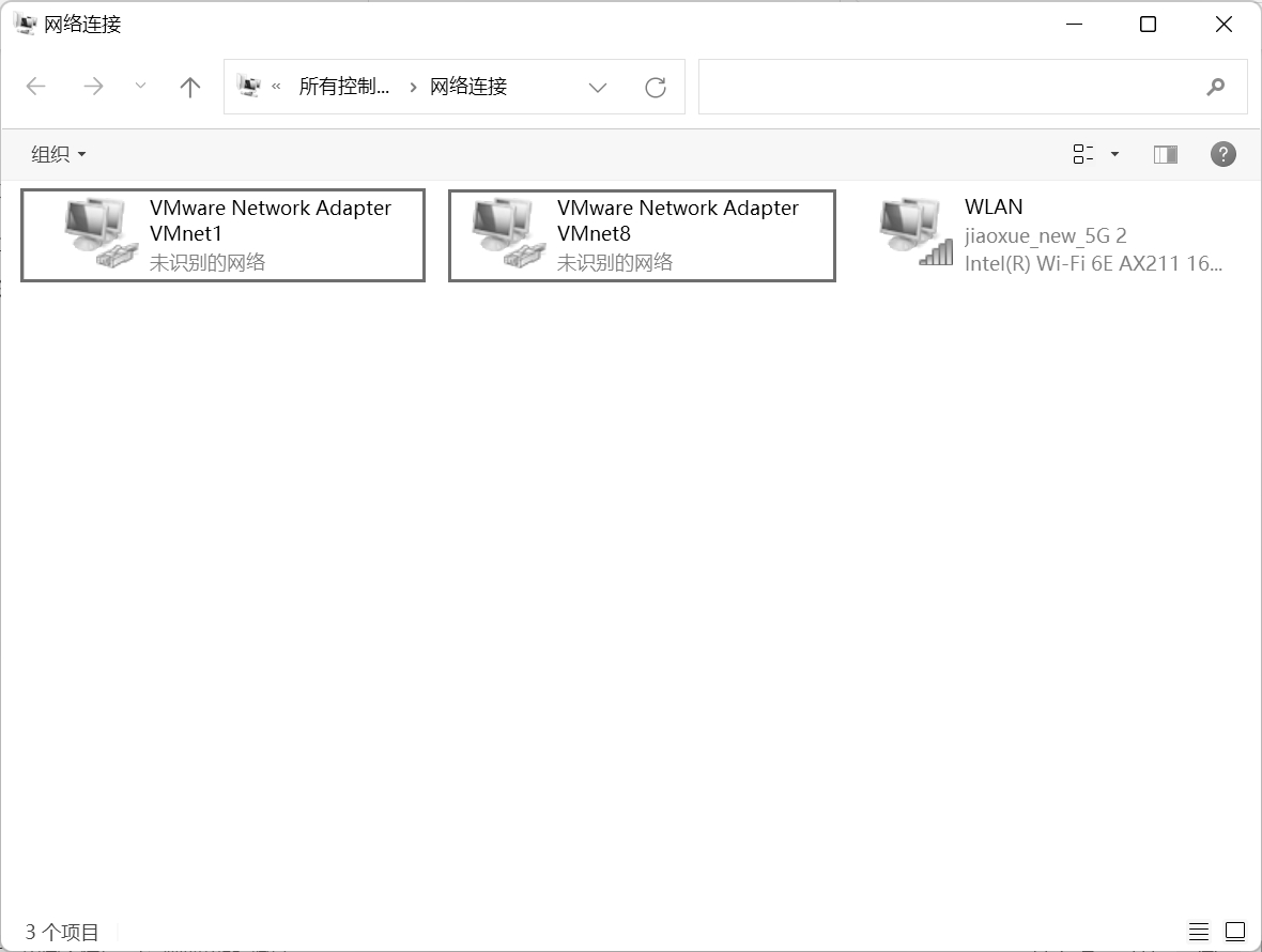 我们会发现当虚拟机正常安装之后,除了真实机的无线网卡WLAN,Windows中又出现两块虚拟网卡,分别是“VMnet1”和“VMnet8”。那么虚拟机的几种网络连接方式就和这几块网卡有关。
