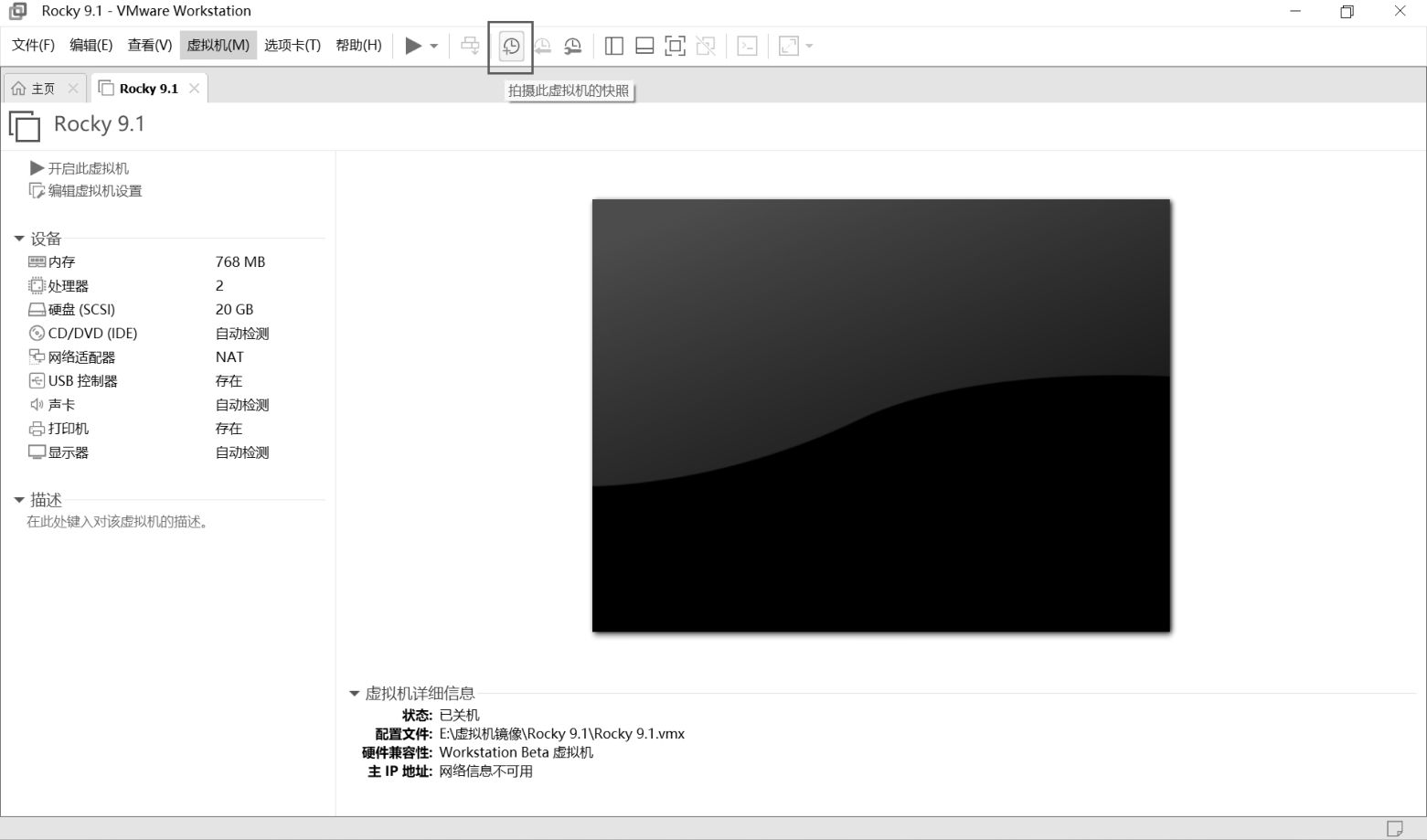 注意: 此时的Rocky 9.1镜像只是一个空白镜像,还没有安装好系统,就像你刚买好了计算机,但是没有安装操作系统一样,还不能正常使用,需要手工安装Linux操作系统。
