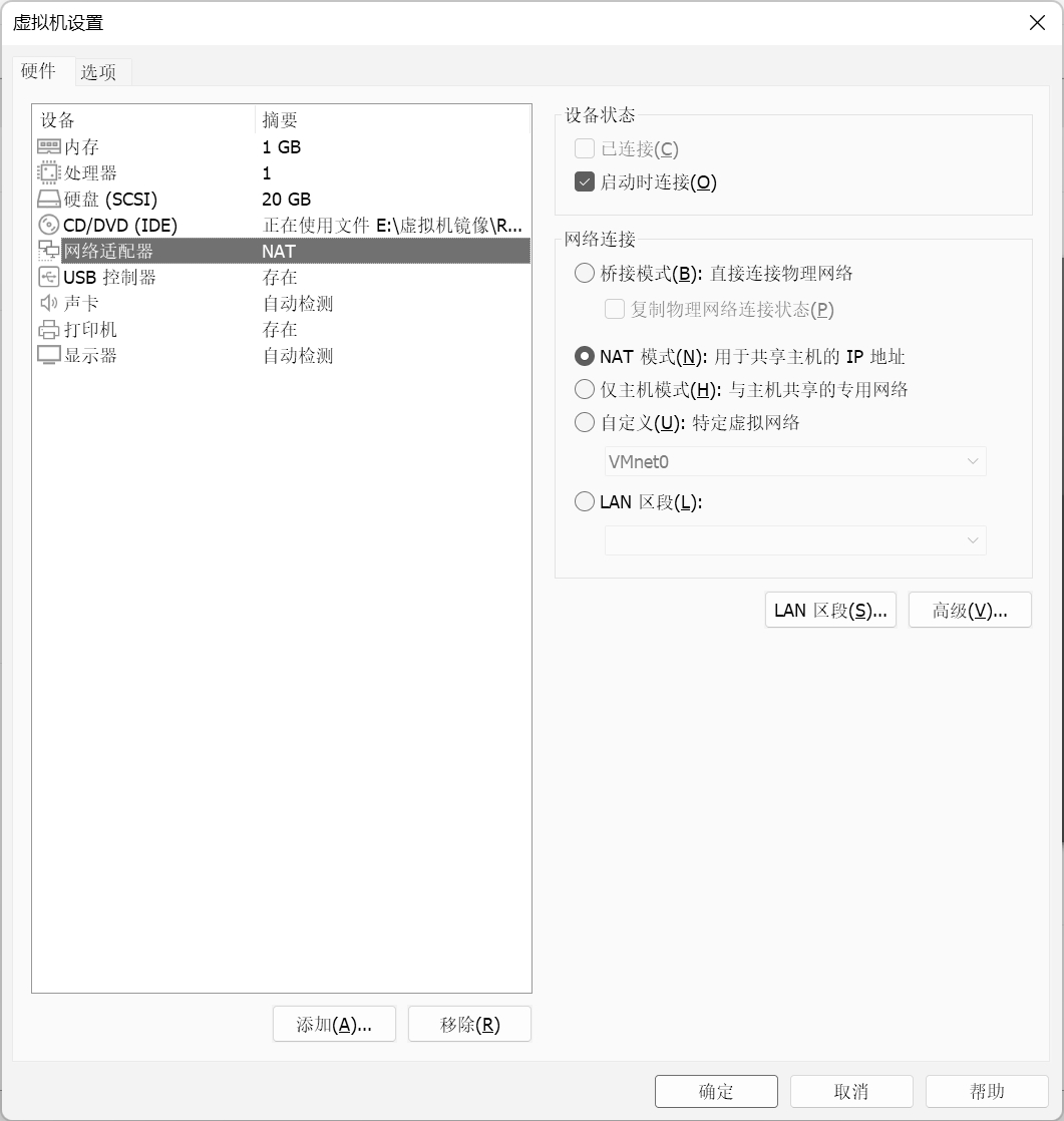 关于虚拟机网络配置我们现在先了解这么多,在安装好Linux之后,再进行网络连通的实验。