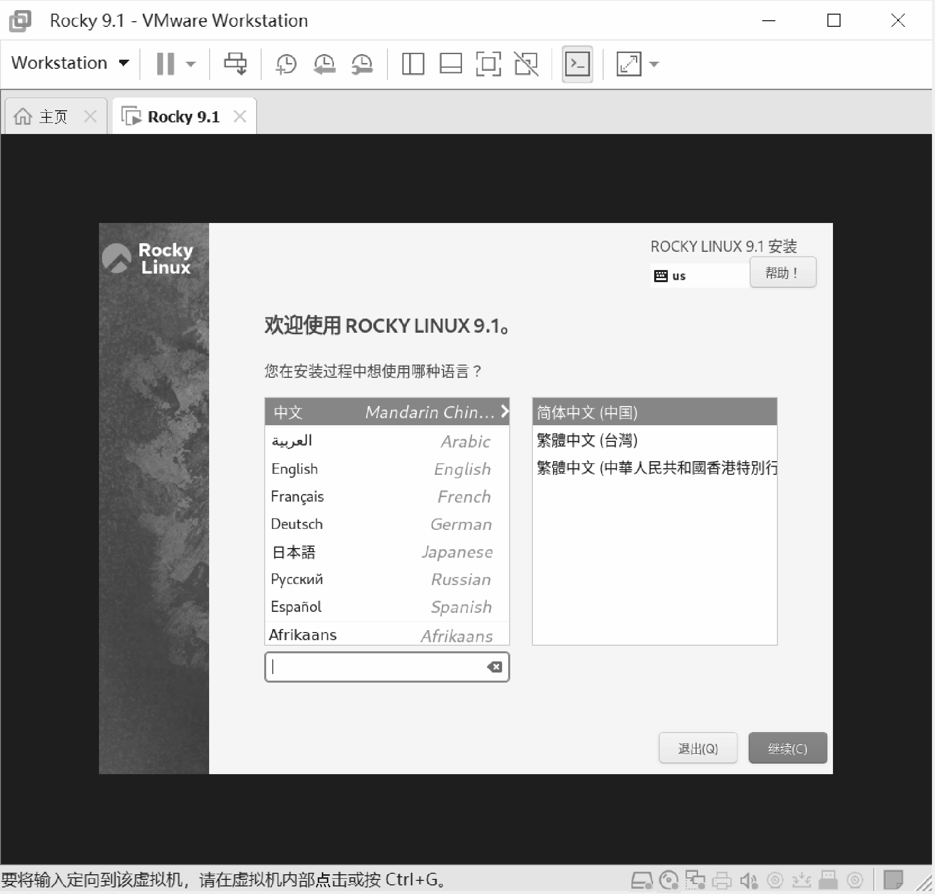 这些选项是进行Linux高级安装操作的选项,如“Rescue a Rocky Linux system”这个选项就是修复Linux系统错误使用的,我们会在启动章节讲解修复模式的使用,这里可以先忽略这些选项。