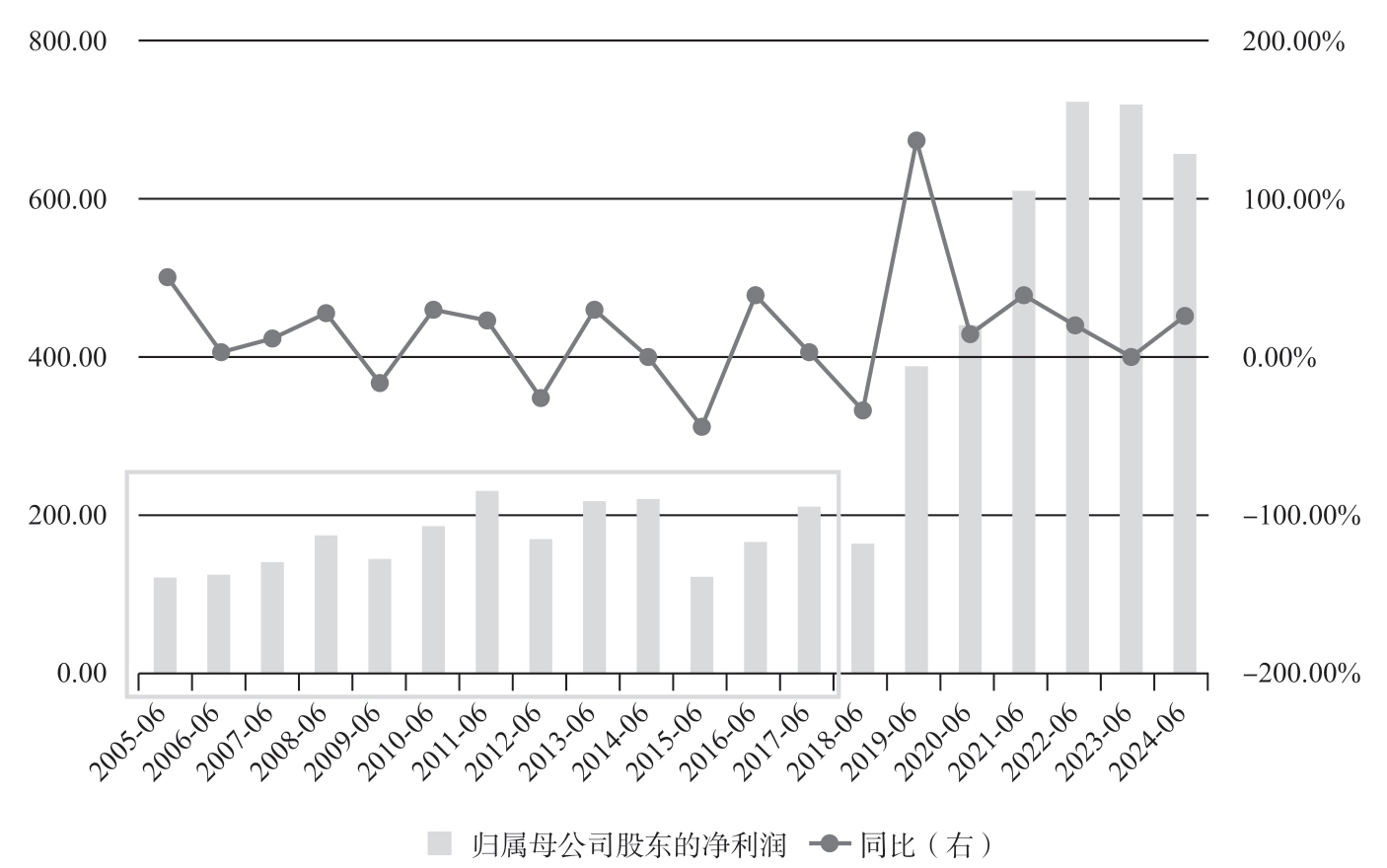 我的观点趋向于后者:长期保持稳定的净利润增长是件非常不容易的事情。哪怕是极其优秀的公司,如现在如日中天的微软,也曾面临增长瓶颈。但在2018年至2022年,微软通过开拓云业务实现了净利润的显著增长,股价也随之飙升(见图1-13)。