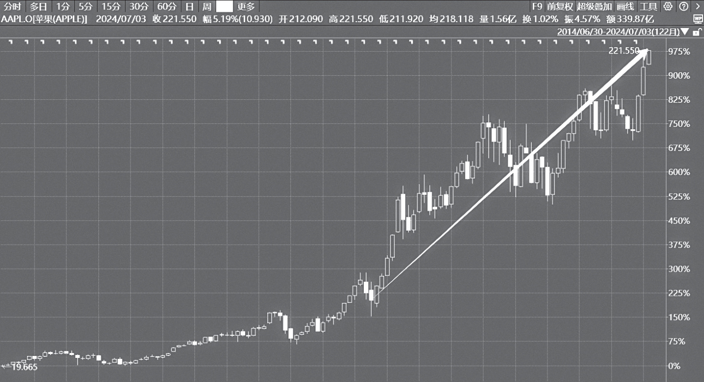 图1-16 苹果股价过去5年增长趋势极其迅猛