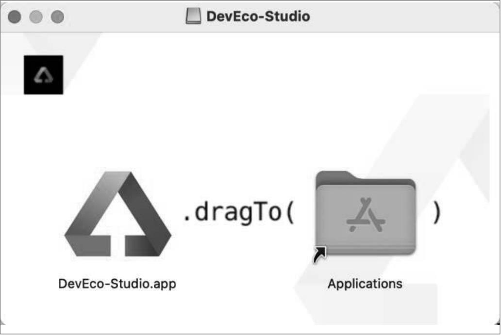 在安装界面中,将DevEco-Studio.app拖曳到Applications中,等待安装完成,如图1-5所示。