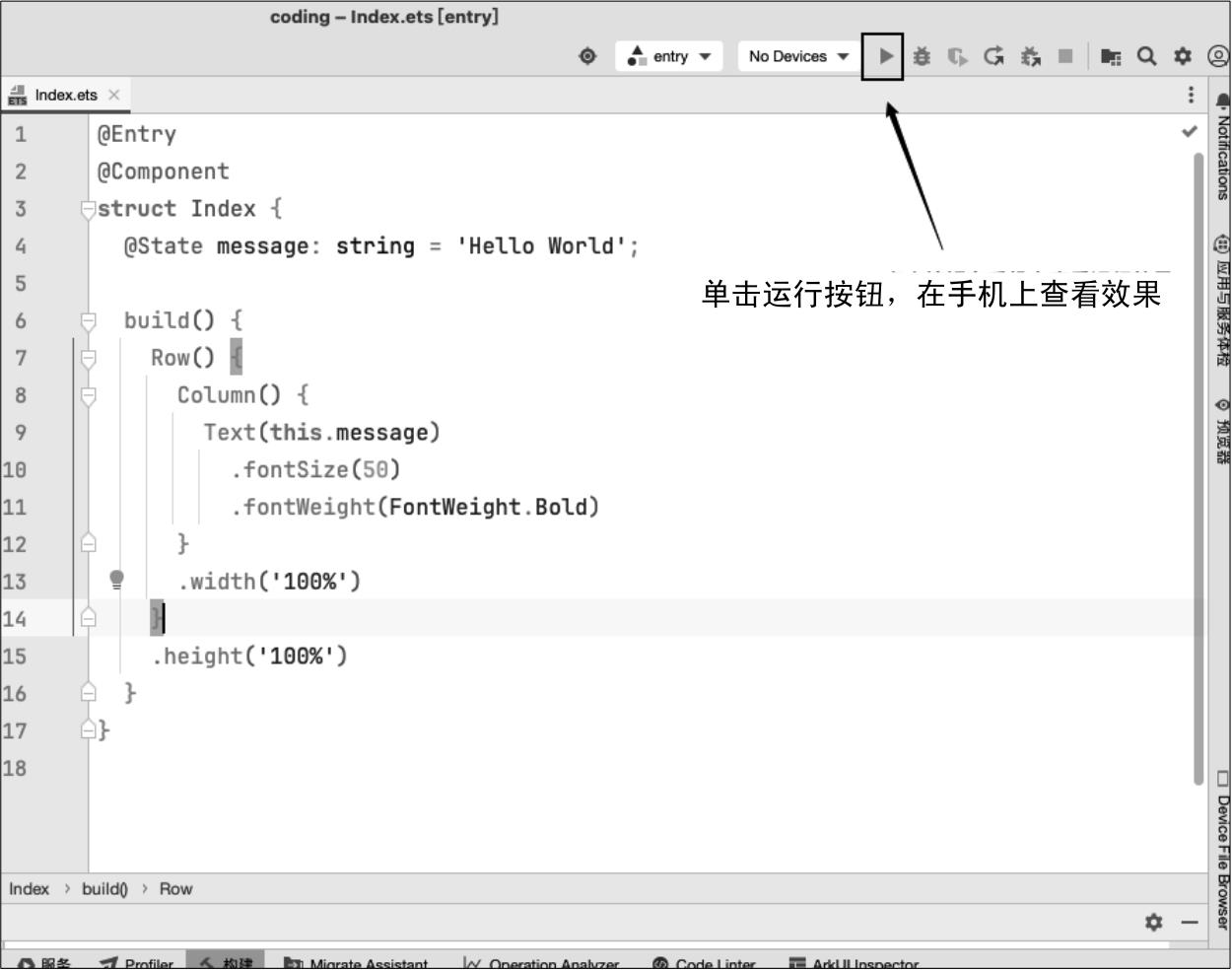 至此,我们已成功运行了第一个应用。这虽然是一个入门案例,但却让我们迈出了成为HarmonyOS开发者的第一步。接下来,我们将循序渐进地介绍原生鸿蒙开发的一系列知识点。