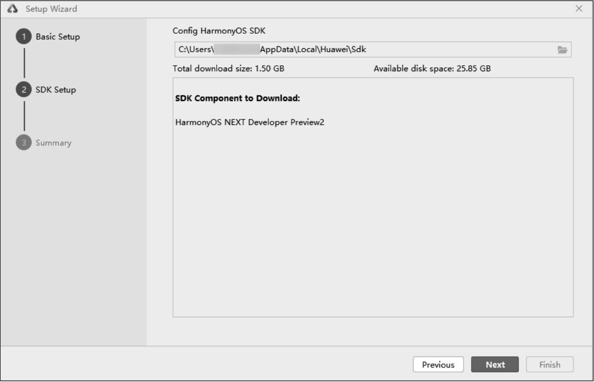 按钮,设置HarmonyOS SDK存储路径,然后单击Next按钮进入下一步,如图1-7所示。