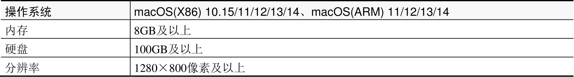 macOS用户可以按照Windows环境下的安装步骤安装DevEco Studio。为保证DevEco Studio能够在macOS系统中正常运行,建议计算机配置满足如表1-2所示的要求。