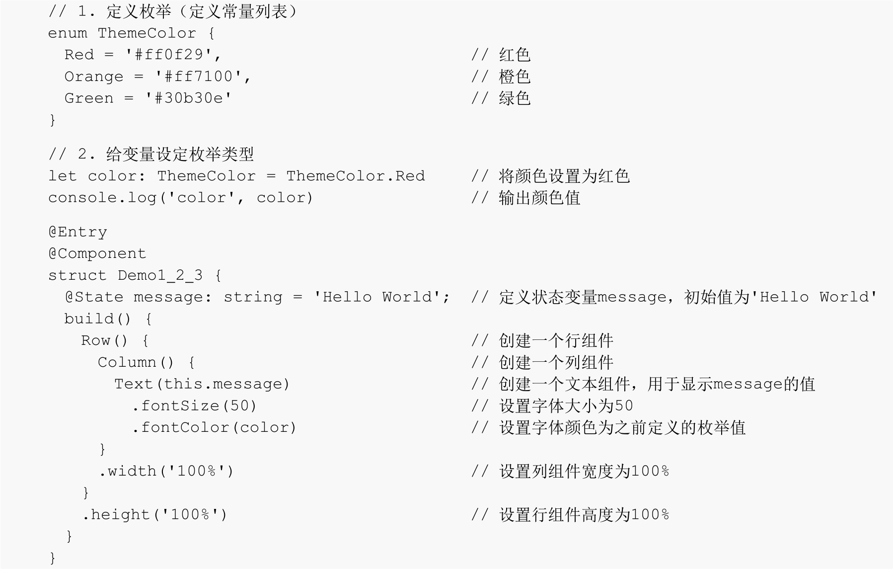 通过点链式调用的方式获取枚举的颜色值并赋给变量后,在text组件中就可以直接获取这个颜色值了,界面效果如图1-22所示。