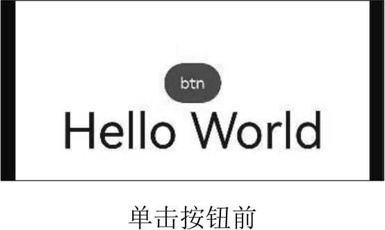 在上述代码中,定义了一个函数myClickHandle,声明它的返回值是void,并且在Button按钮被单击时触发该函数。需要注意的是,这种方法需要使用bind(this)的方式进行绑定才可以触发。界面效果见图1-23和图1-24。