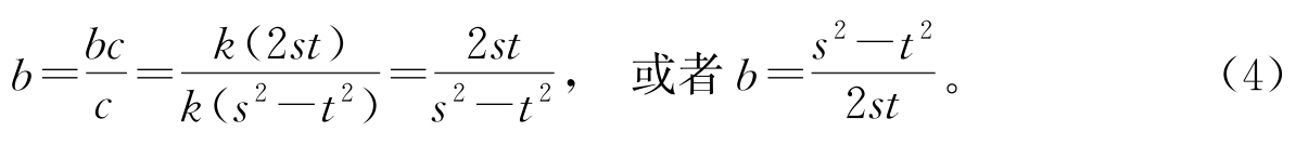 其中 s , t 为任意正整数,但要求 s 和 t 互素, s > t ,并且 s 和 t 中一个为奇数而另一个为偶数。